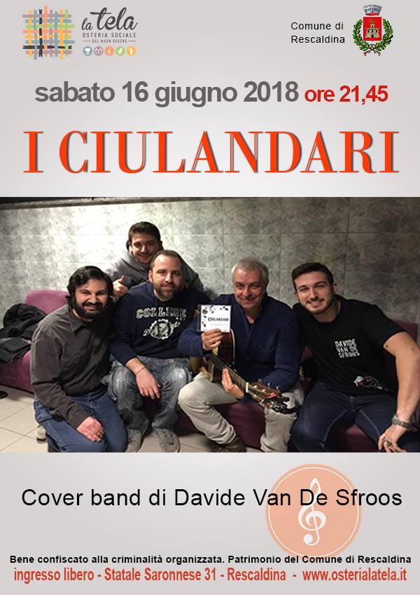 I Ciulandari”, formati da musicisti della zona,  hanno fatto proprie le canzoni del cantautore comasco riproponendole in un efficace live. Dal folk alle ballate, ogni brano racconta sempre una storia e le persone, trasformando talvolta una situazione in parodia. La cover band deve il suo nome proprio al titolo del primo album di Van De Sfroos all’inizio (uscito in musicassetta negli anni Novanta). A La Tela riproporranno una carrellata di tutti i più noti brani che hanno fatto la storia del cantautore: dal “La balàda del Genesio” e “Ninna nanna del contrabbandiere” fino alla celebre “Pulenta e galena fregia” e le ballatissime “La Curiera” e “La Balera”. Un omaggio all’artista e al suo modo di raccontare un territorio e la sua gente, istantanee di uomini e donne che resteranno di fatto “impressi” per sempre.