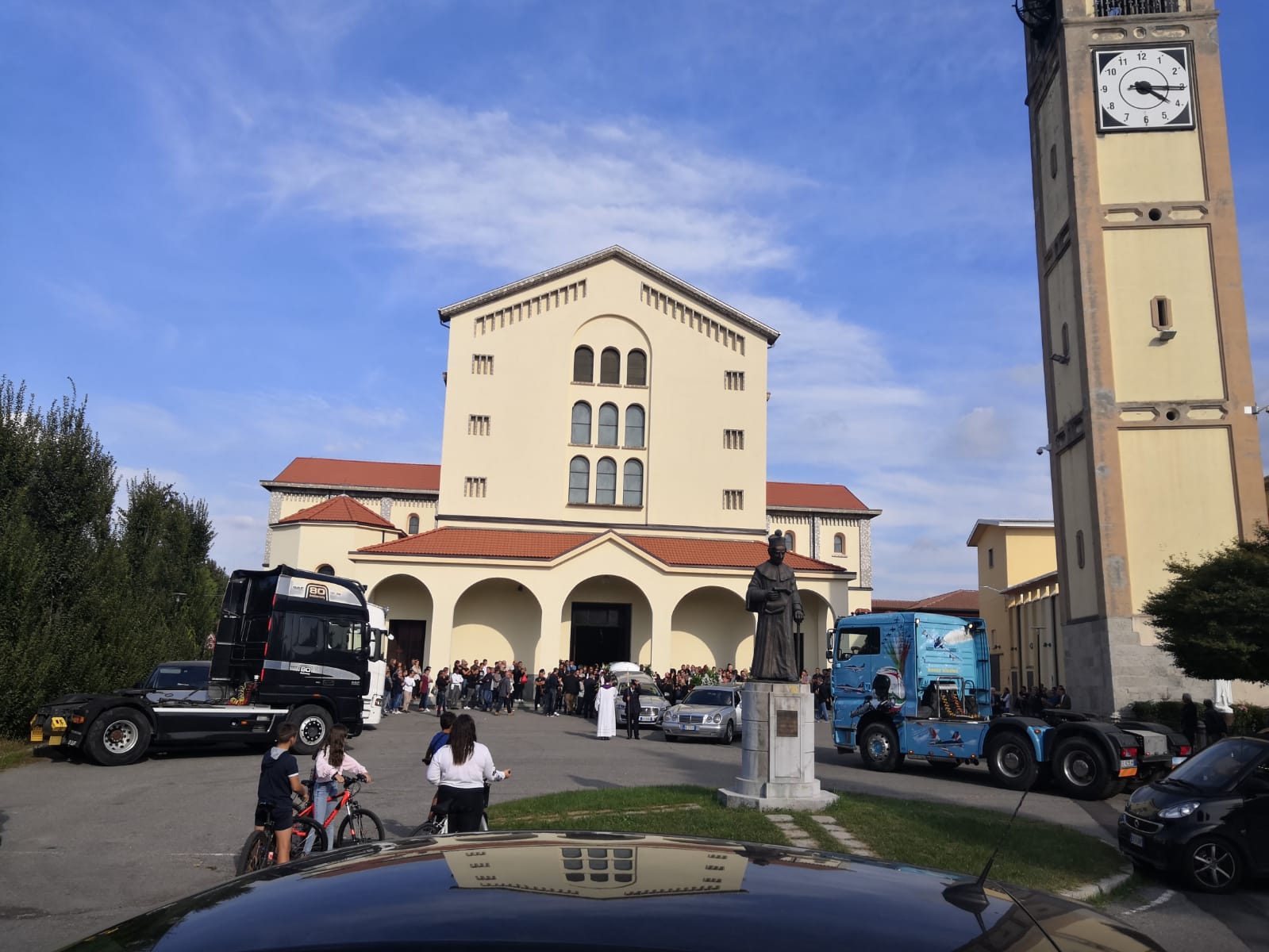 Un lungo applauso e i clacson dei camion. In questo modo i familiari, i colleghi e gli amici hanno voluto salutare per l’ultima volta Carmine Gabriele, il camionista che ha perso la vita sul lavoro martedì a soli 49 anni in un cantiere a Bovisio Masciago. “Carmine ci ha lasciati mente faceva il suo dovere. Una passione più che un lavoro, che aveva trasmesso anche a suo figlio. Una tragica fatalità ha cambiato tutto, ma la morte non ha il potere di cancellare i nostri cari ma trasforma il rapporto che abbiamo con loro”. Questo un passo dell’omelia di don Armando Colombo.