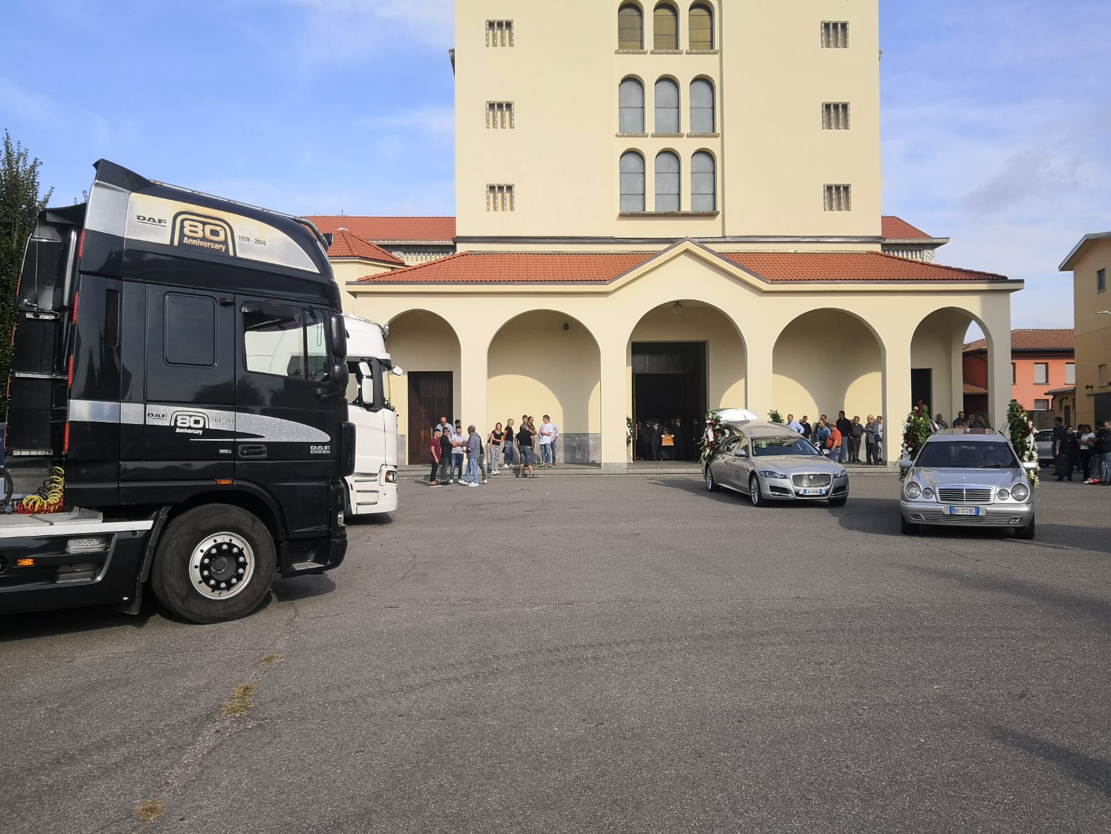 I clacson dei camion per l’addio all’autista di Uboldo