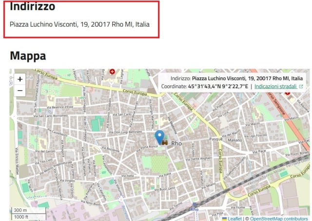 Sul sito del Comune: «Indirizzo: Piazza Luchino Visconti, 19, 20017 Rho MI, Italia»