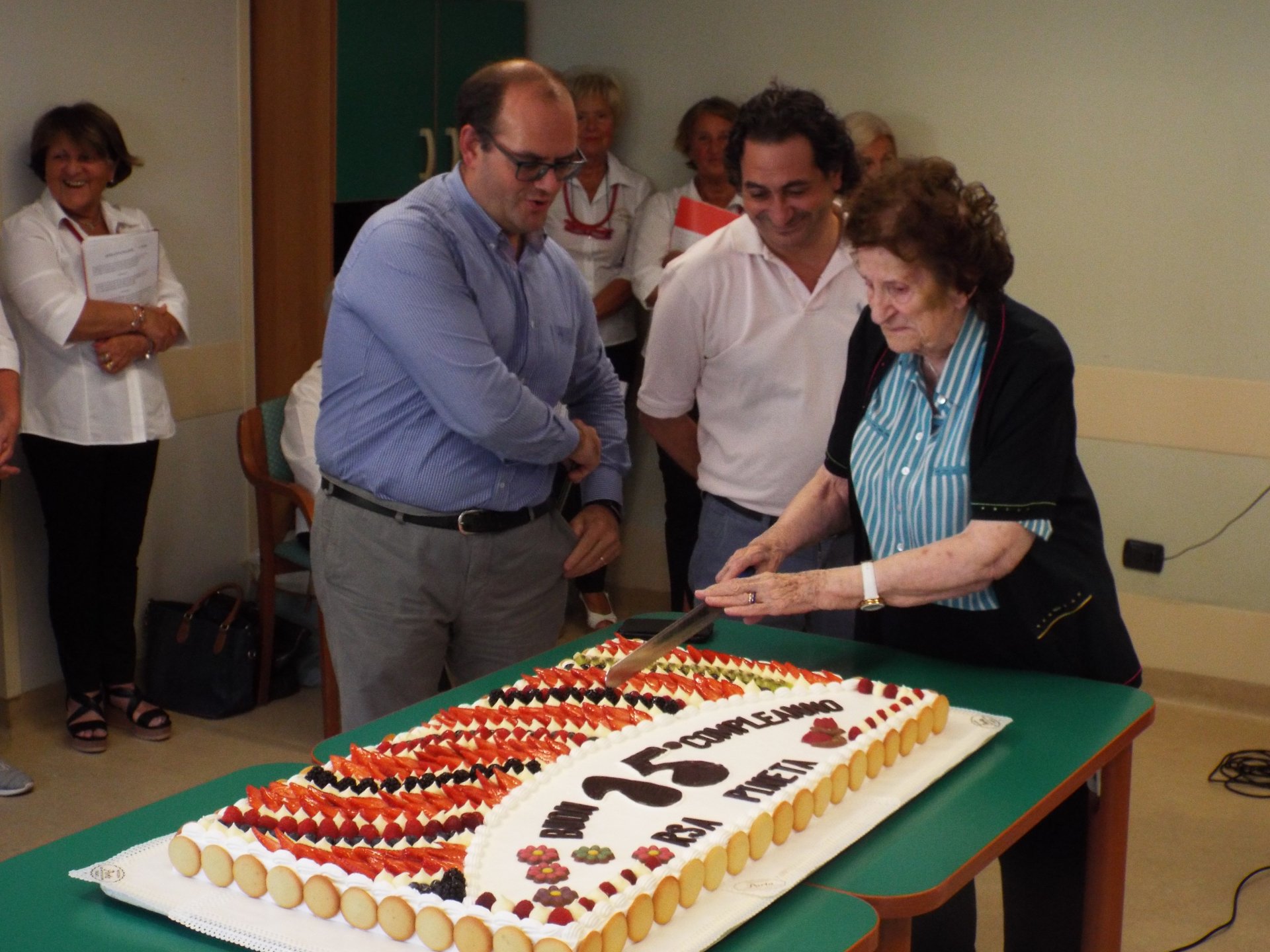 Il taglio della torta con le autorità per i 15 anni della Rsa Pineta