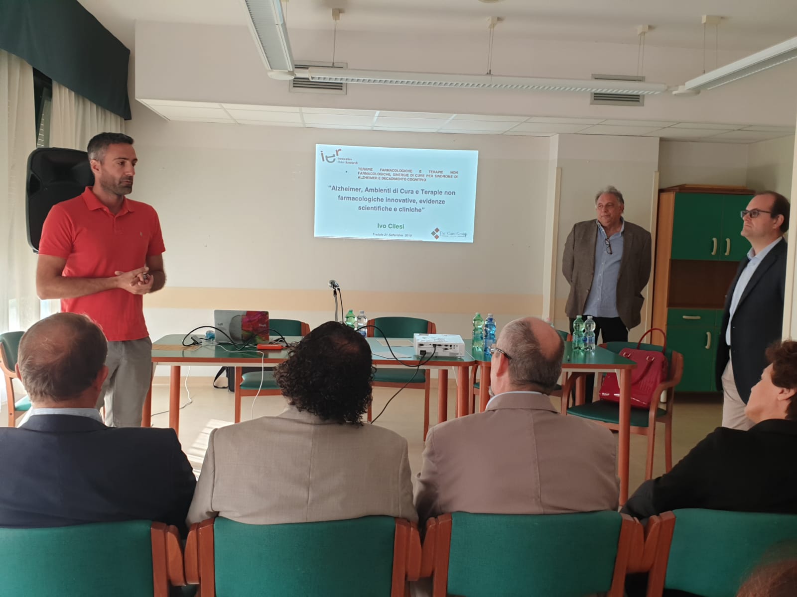 Sono intervenuti: il dottor  Ivo Cilesi (Presidente di Innovative Elder Reasarch e responsabile terapie non farmacologiche del Centro di Eccellenza Alzheimer presso l’ospedale Briolini di Bergamo) che ha presentato le varie terapie non farmacologiche in atto, e in fase attuativa, alla Rsa Pineta quali ad esempio la doll- Terapy, stanza Snoezelen, cucina terapeutica, tutte terapie con la finalità di «interrompere» le fasi di agitazione quotidiana degli ospiti; il professor Davide Uccellini, dirigente del reparto di neurologia e neurofisiologie dell’ospedale di Tradate: «Attualmente nel distretto di Tradate le persone affette da Alzheimer rappresentano più del 6% e ogni anno vengono diagnosticati 150 nuovi casi,  dati destinati nei prossimi anni ad aumentare».