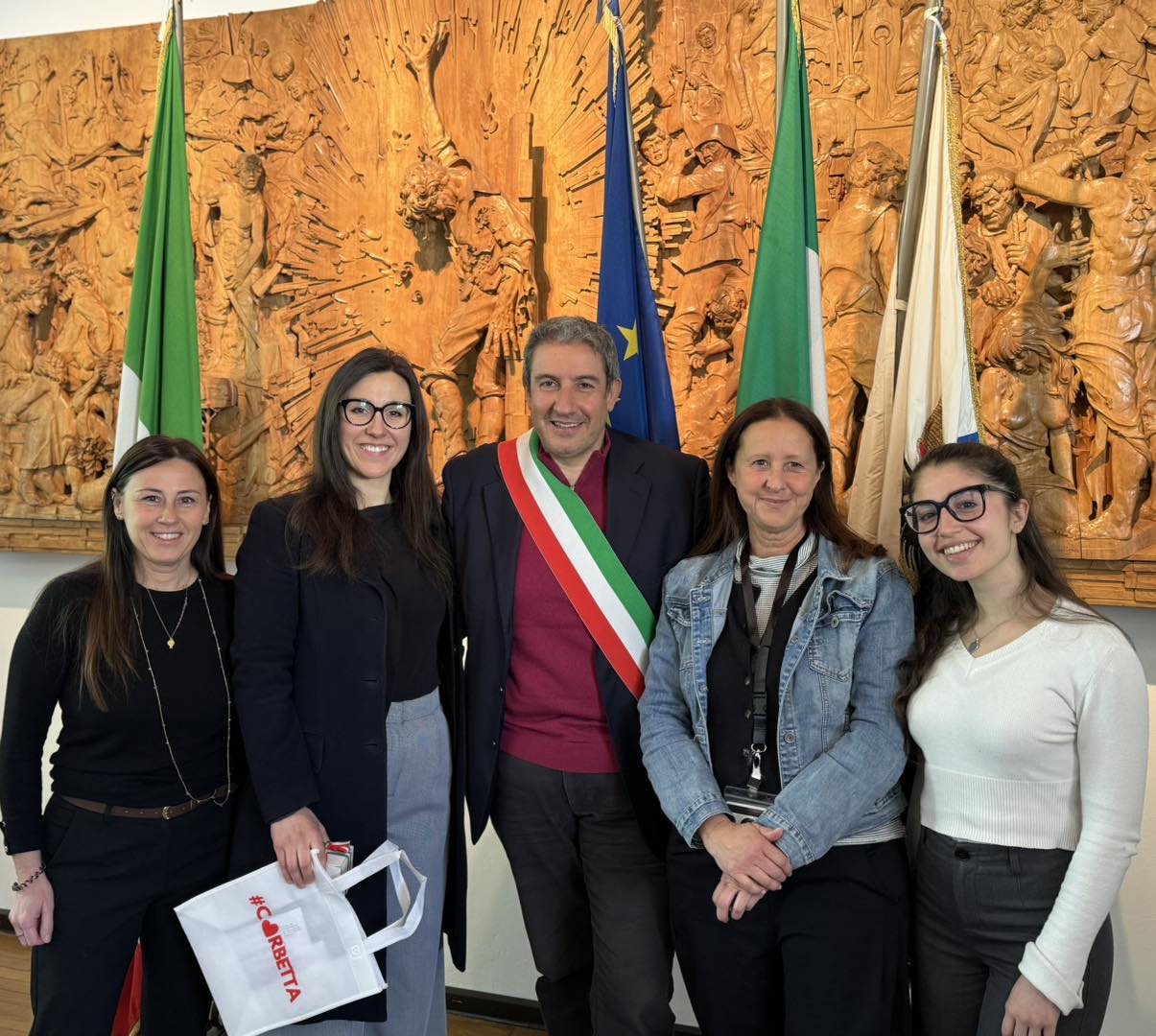 A darle il benvenuto mercoledì 1 aprile in Comune, oltre al primo cittadino e ad alcuni rappresentanti della Giunta quali la vice sindaco Linda Giovannini, l’assessore Antonella Cislaghi e l’assessore Marta Mattina, erano presenti anche l’amico tenore e maestro Andrea Semeraro, cittadino corbettese, in compagnia di altri colleghi artisti del Coro del Teatro alla Scala: Michele Mauro, Maria Miccoli, Mauro Venturini, Barbara Lavarian, Flavia Scarlatti ed Elisabeth Kilby.