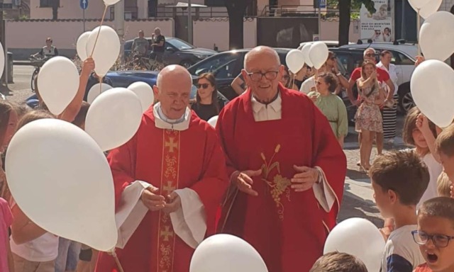 Don Luigi Colombo di San Lorenzo a Parabiago ha festeggiato i suoi 80 anni… in tv.