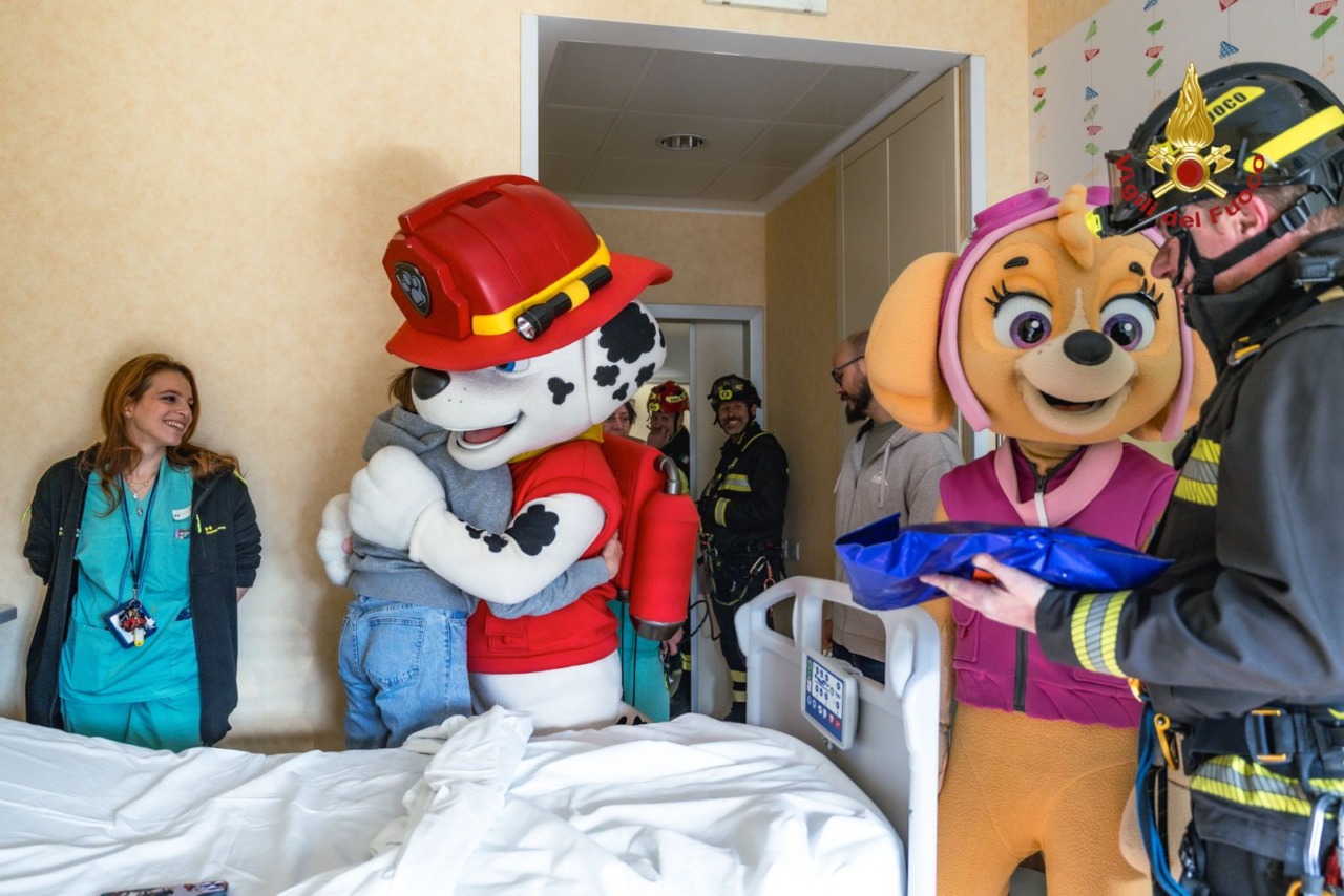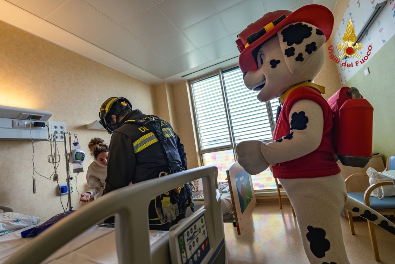 I Vigili del fuoco portano un sorriso ai piccoli pazienti del Niguarda