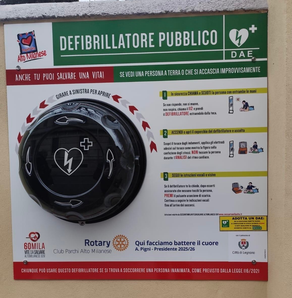 In occasione dell’inaugurazione del nuovo Kids Museum di Legnano, il Rotary Club Parchi Alto Milanese ha attivato ufficialmente un punto DAE Rotary con defibrillatore automatico esterno, a disposizione della comunità.