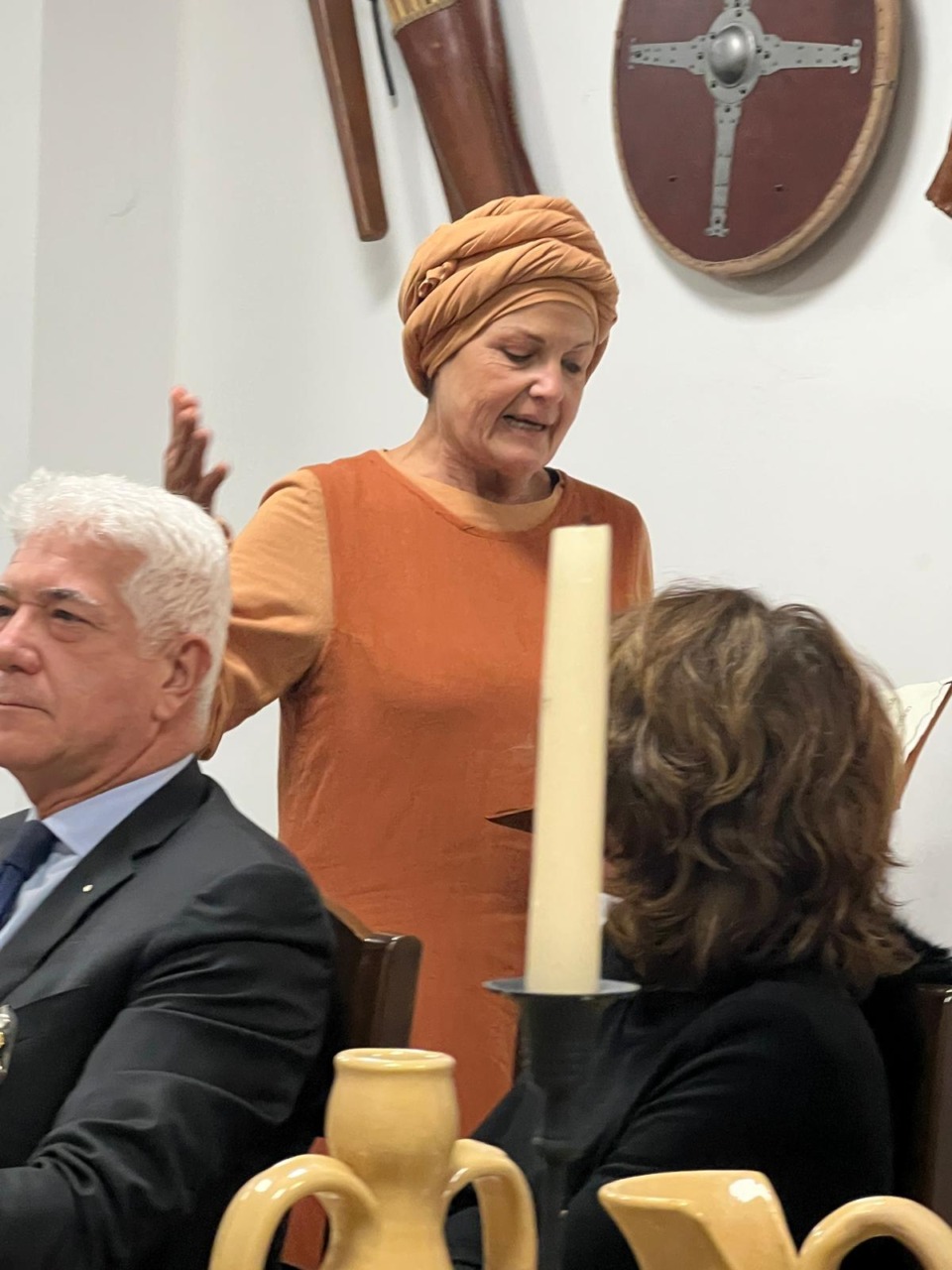 Non è mancata l’appassionata e coinvolgente decantazione dei cibi, degli usi e dei costumi dell’epoca, da parte della Gran Dama di Contrada Rosanna Garavaglia.