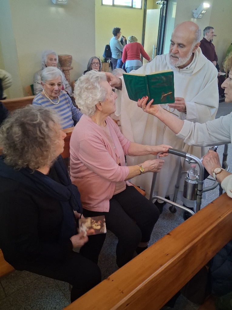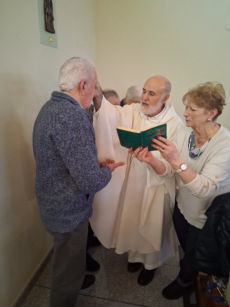 Al termine della celebrazione eucaristica, allietata dai brani eseguiti dalle sapienti mani del maestro Cesarino Pusterla e dalle coriste della parrocchia di S. Pietro, don Diego con un’omelia che ha riportato in alcuni momenti ai ricordi di Catechismo ripassando il concetto di dogma e sacramenti ha impartito al termine l’unzione dei malati ad Ospiti e presenti.