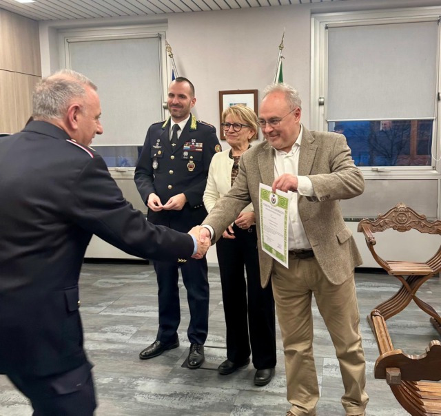 «Lui è stato protagonista in settimana di un duplice momento in cui si è visto riconoscere i dovuti meriti dopo il lavoro svolto nel corso delle sue precedenti esperienze – ha sottolineato Rachele -. Da una parte l’encomio, che già avevamo riconosciuto ad altri colleghi dopo il blitz contro il narcotraffico e le armi e che risaliva a due anni fa, dall’altra, invece, la promozione a sotto-ufficiale. Entrambi i risultati sono comunque arrivati per dare risalto a una persona che può vantare un bagaglio con un’esperienza trentennale. Bagaglio che si traduce ora in competenze operative e amministrative di grande rilievo, che siamo orgogliosi e certi possano essere messe al servizio della comunità».