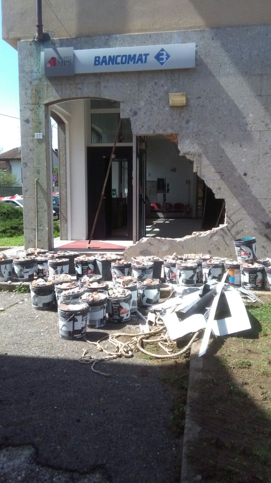 Besate, incredibile quanto accaduto nella notte tra domenica 15 e lunedì 16 aprile: qualcuno ha rubato un trattore, lo ha messo in moto e si è diretto verso il bancomat di via Duchessa Marianna. Secondo le prime ricostruzioni, gli autori del folle gesto hanno puntato al bancomat della filiale del Monte de Paschi di Siena e, prendendo a più riprese la rincorsa, hanno tentato di far cedere la struttura usando il trattore come ariete. Ad un certo punto hanno anche cercato di legare lo sportello ad un cavo e trascinarlo via. Il colpo è fallito, anche perchè l’allarme ha immediatamente iniziato a suonare: i malintenzionati si sono quindi dati alla fuga. Sul posto i carabinieri, che hanno fatto portare via il trattore. Come risulta evidenti dalle immagini, ingenti i danni alla struttura della banca.