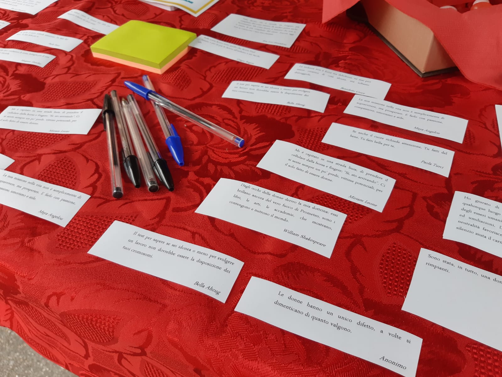 Stavano diventando un piccolo “caso” i bigliettini anonimi comparsi a decine lungo le strade e sugli edifici della città, tutti con frasi e aforismi di grandi personaggi storici e celebri. Ad accomunarli, oltre la carta di un vivo rosso, il tema: tutte le frasi lanciavano un chiaro messaggio a favore delle donne e contro la violenza loro diretta. Un’iniziativa semplice ma dal significato forte, in vista di domenica, Giornata Internazionale contro la violenza sulle donne, che ha incuriosito (e sensibilizzato) i cittadini. Che per giorni si sono chiesti chi potesse essere il misterioso autore dei bigliettini anonimi.