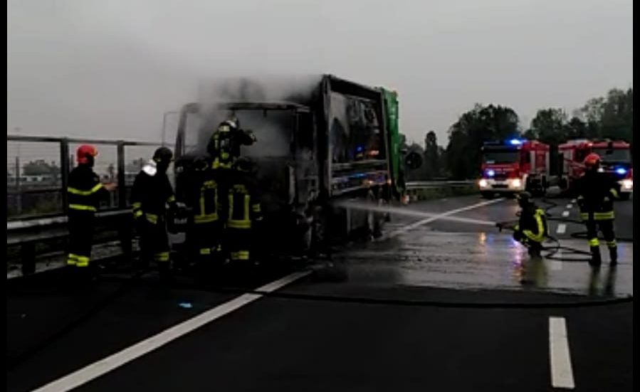 Compattatore Amsa in fiamme, traffico bloccato