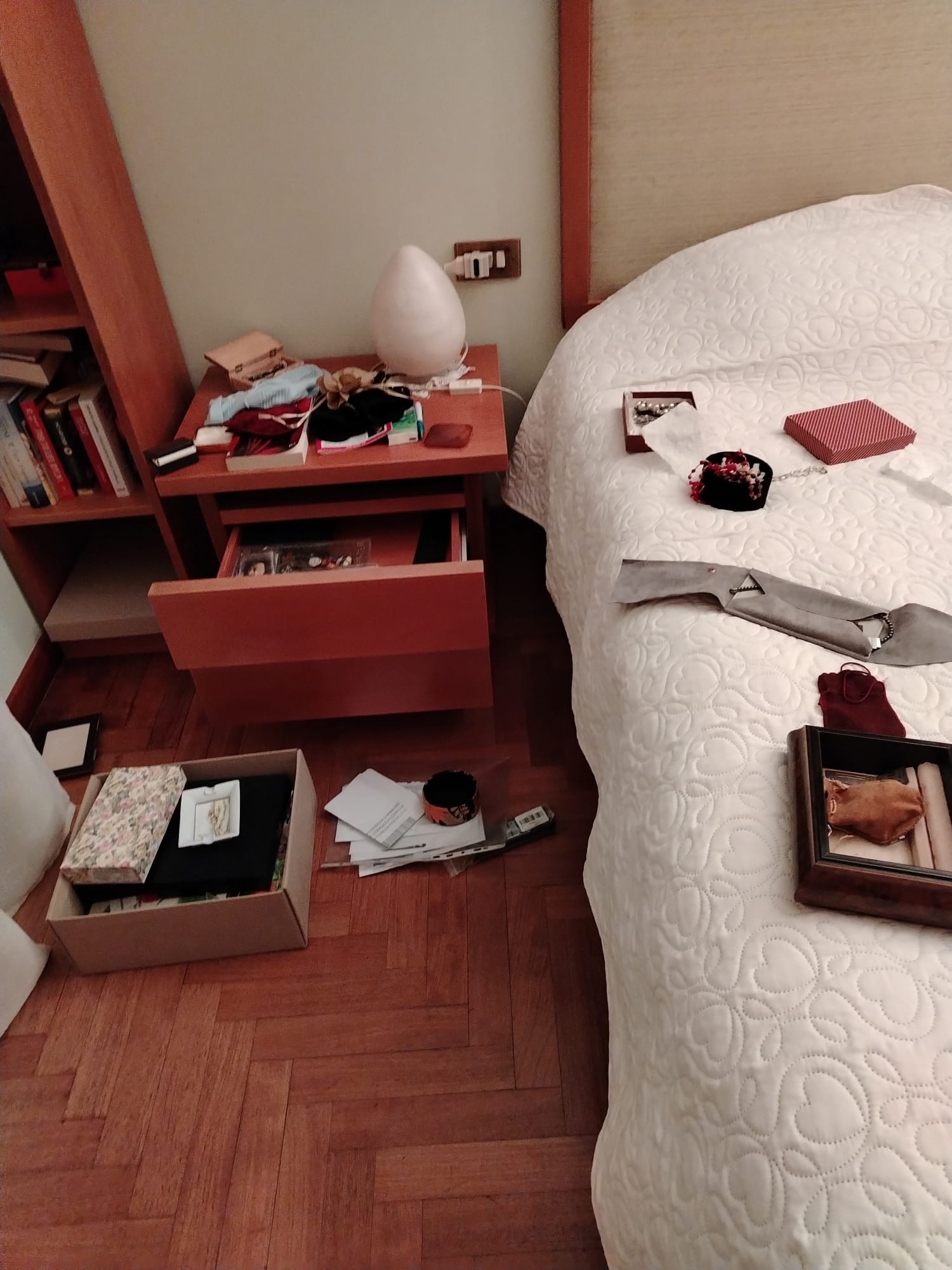 Il bottino? Tre fedi nuziali, braccialetti, collanine e degli orecchini. Sul caso stanno indagando i Carabinieri.