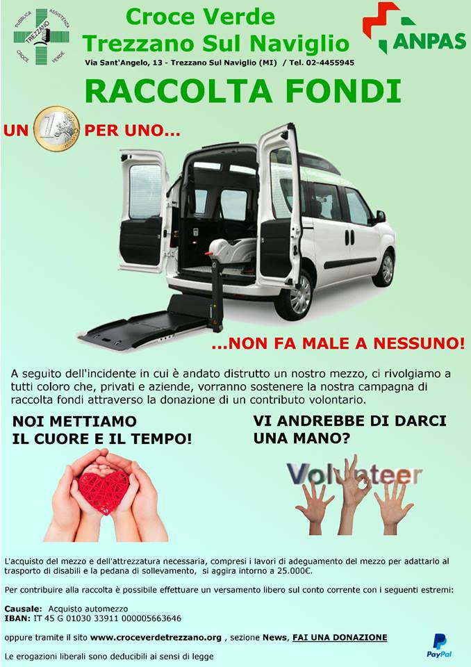 Da buttare invece l’automezzo. E proprio in questi giorni sta partendo la gara di solidarietà nel sud Milano e nell’Abbiatense per sostenere la Croce Verde Trezzano nell’acquisto di un nuovo veicolo. L’appello è rivolto a private e aziende che volessero effettuare una donazione. La cifra da raggiungere è di 25mila euro e comprende anche i necessari lavori di adeguamento per il trasporto disabili. Tutte le informazioni sul sito www.croceverdetrezzano.org.