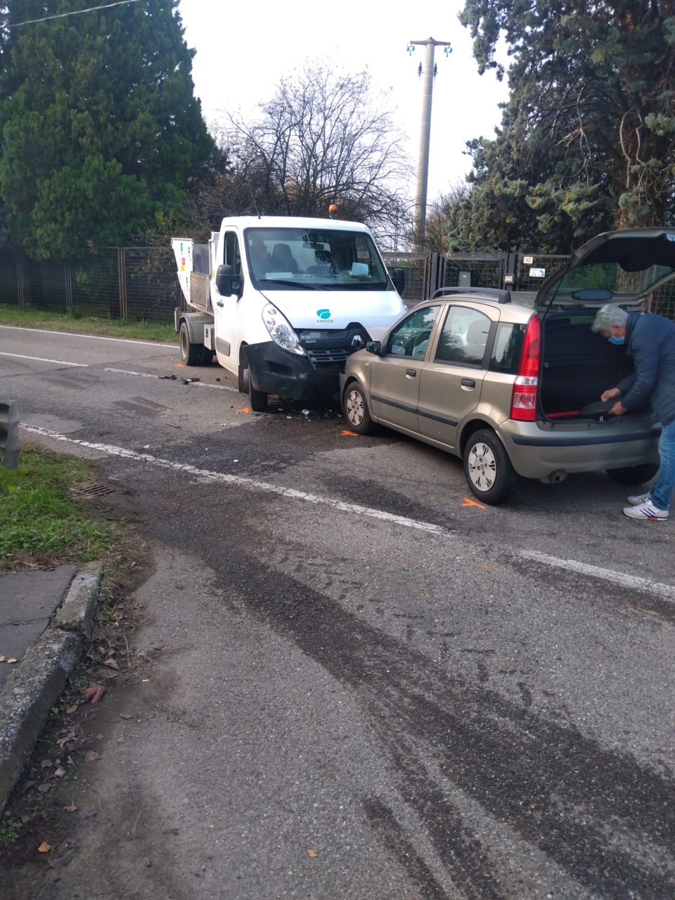 Grave scontro frontale tra un furgone della nettezza urbana e un’auto a Parabiago FOTO