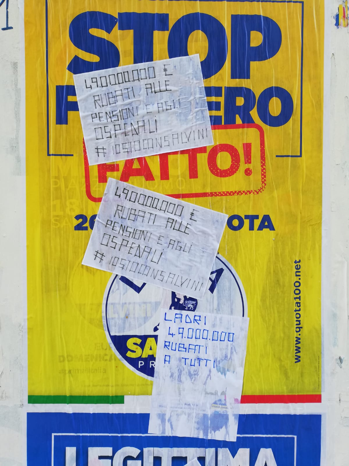 Inveruno, sono stati vandalizzati i manifesti del centrodestra con scritte contro la Lega: le reazioni.