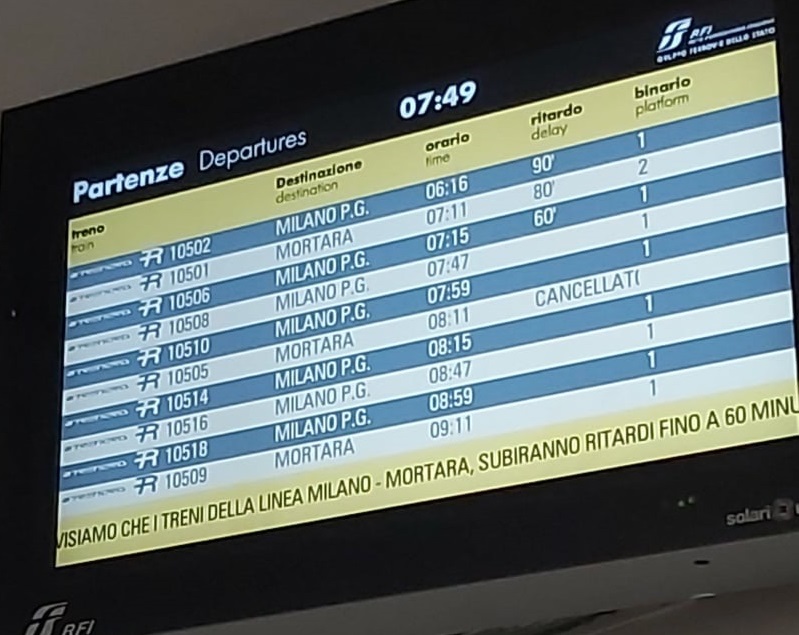 Milano-Mortara, mattinata “horror” per i pendolari della martoriata linea ferroviaria. Purtroppo una delle tante giornate da bollino nero, caratterizzata in questo caso da ritardi con punte massime sino a 107 minuti, oltre un’ora e mezza.