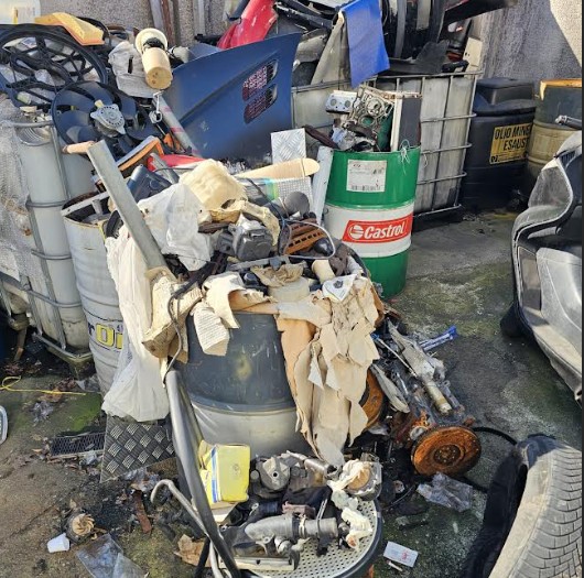 Scooter e furgoni dismessi, 70 pneumatici accumulati in modo disordinato, olii, numerosi ricambi e scarti di plastica