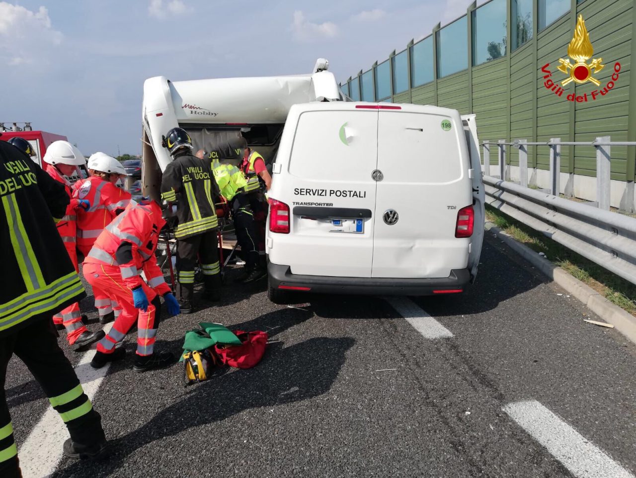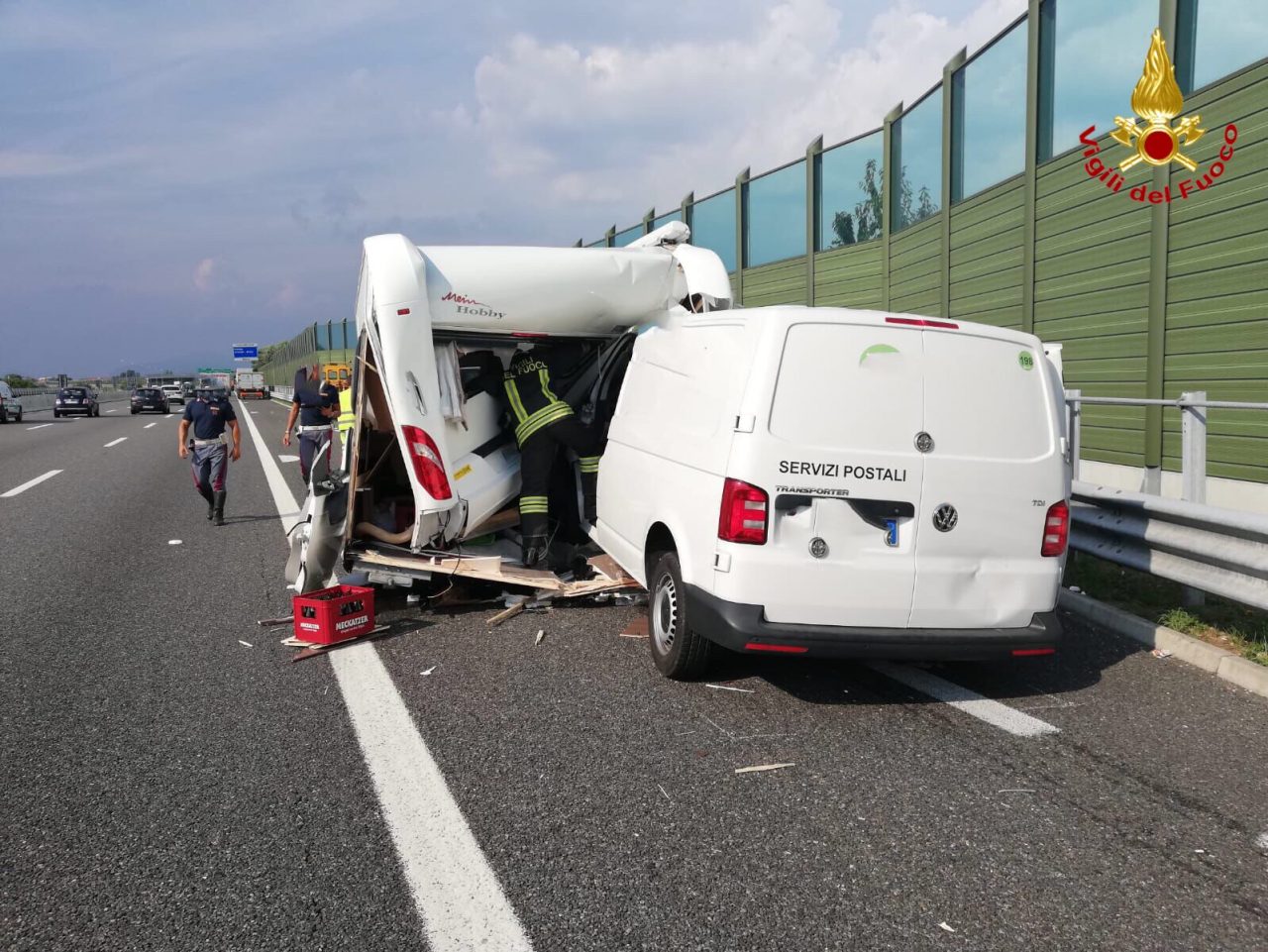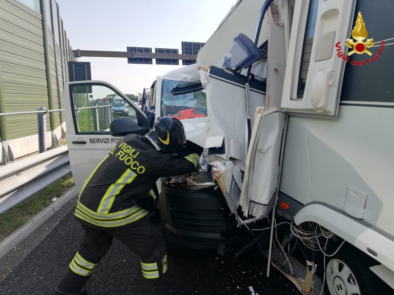 Scontro in autostrada, il furgone si incastra nella roulotte FOTO