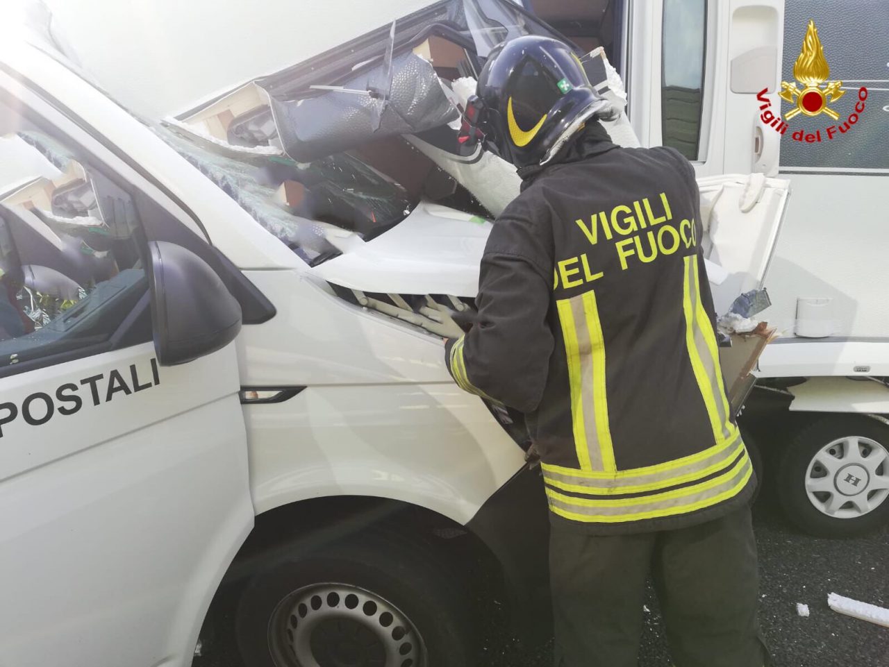 Scontro in autostrada, furgone incastrato