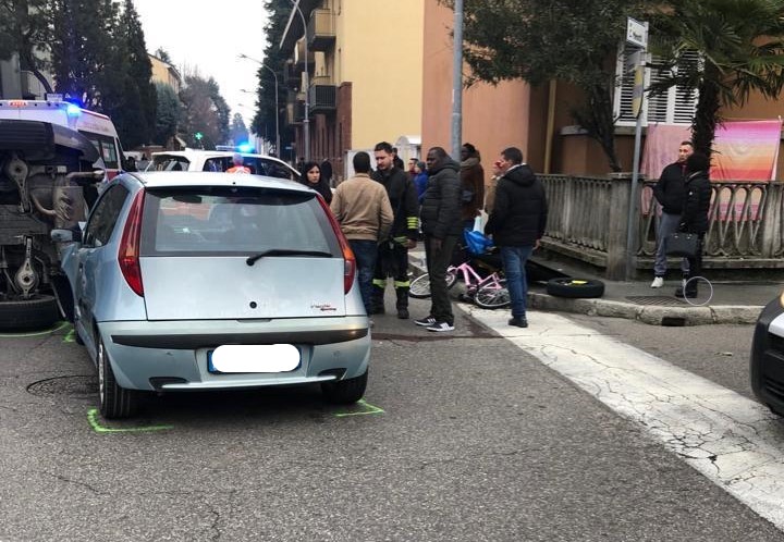 Drammatico scontro tra due auto a seguito del quale una si è ribaltata: tra le cinque persone coinvolte anche una bambina di 11 anni e una di sei