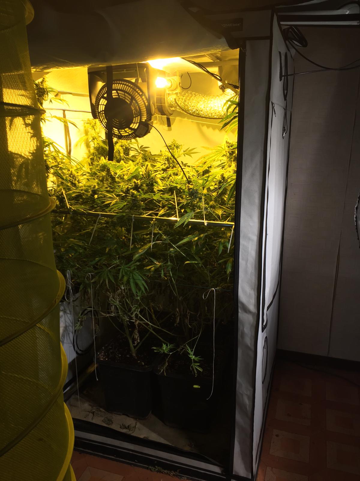Il laboratorio era formato da cinque box completi di sistema di riscaldamento, illuminazione temporizzata per ricreare il ciclo giorno-notte, ventilazione e aspirazione forzata che espelleva l’aria verso l’esterno precedentemente filtrata con filtri a carboni attivi. Tra gli strumenti da lavoro c’era anche un attrezzo utilizzato per l’estrazione dell’olio dal quale si ottiene l’hashish. Ovviamente non mancavano bilancini e materiale per il confezionamento.