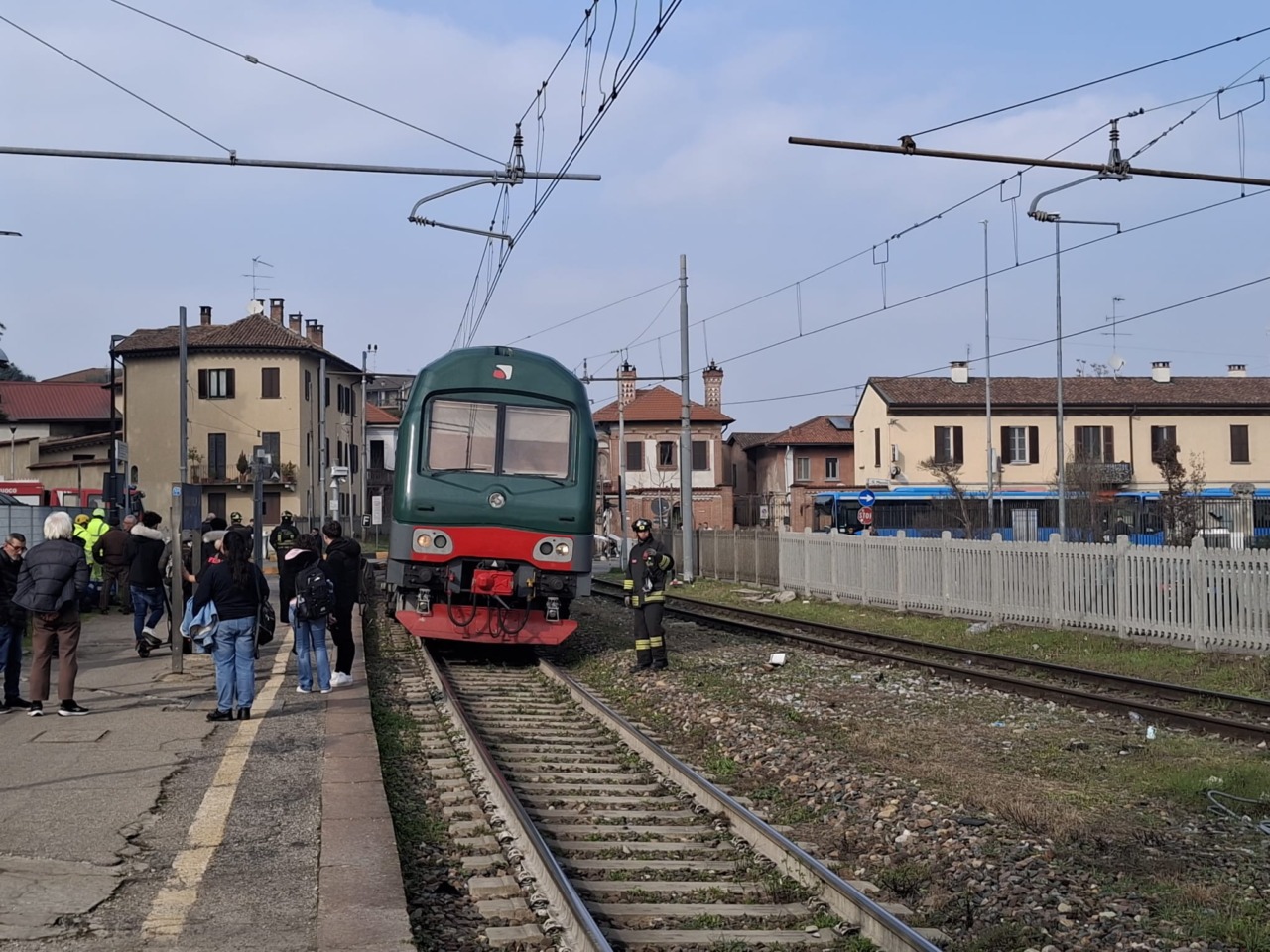 Sul treno sono presenti ancora circa 130 persone che non sono state ancora fatte scendere in attesa del nulla osta che dovrà arrivare dalla Polizia Ferroviaria. Sul posto sono intervenuti i Vigili del fuoco volontari di Abbiategrasso, con la presenza di un mezzo speciale della sede centrale di via Messina a Milano.