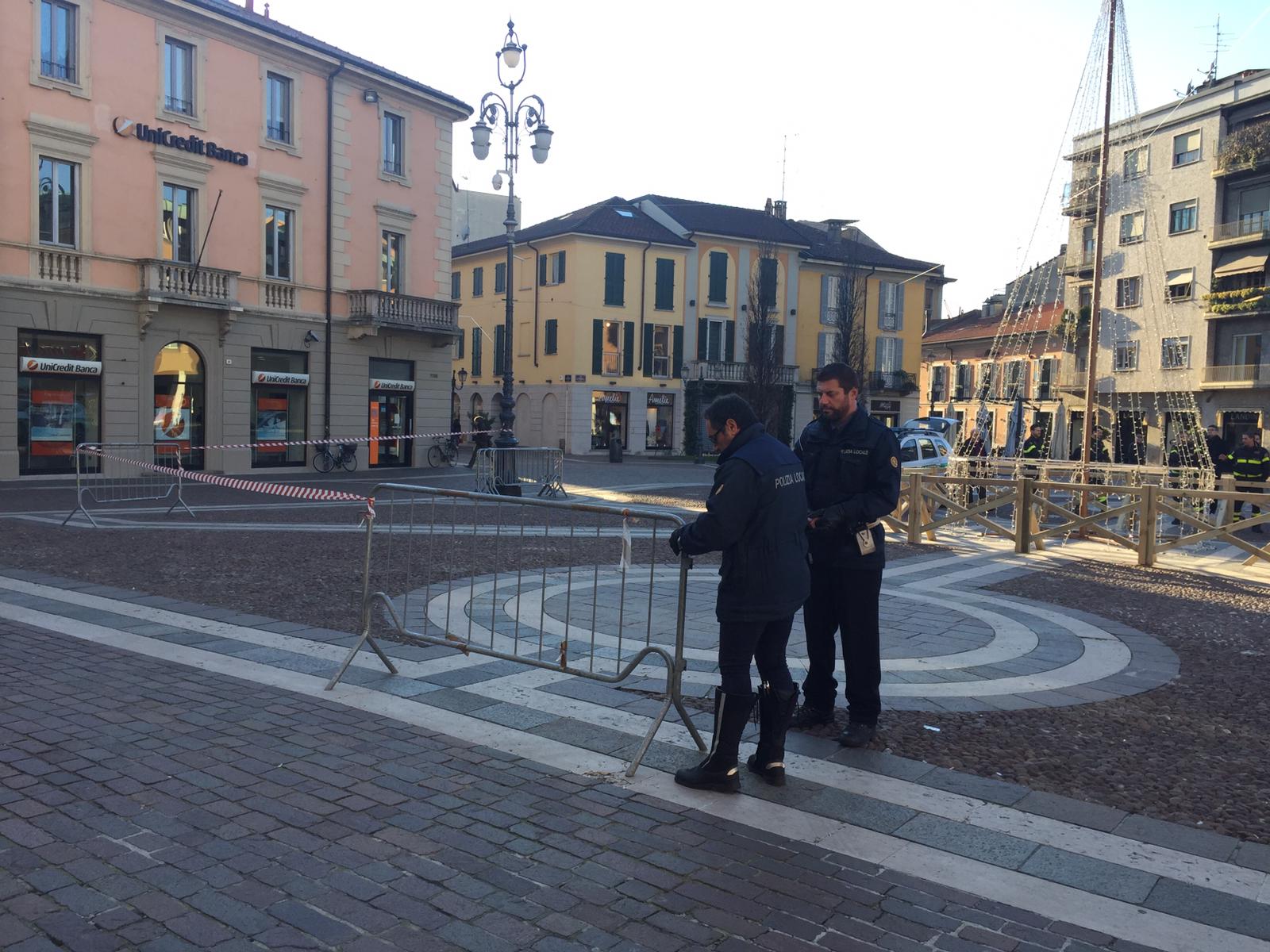 Vigili del fuoco in piazza Libertà a Saronno per fare approfondimenti sull’albero di Natale installato nel week end e per le relative procedure di messa in sicurezza.