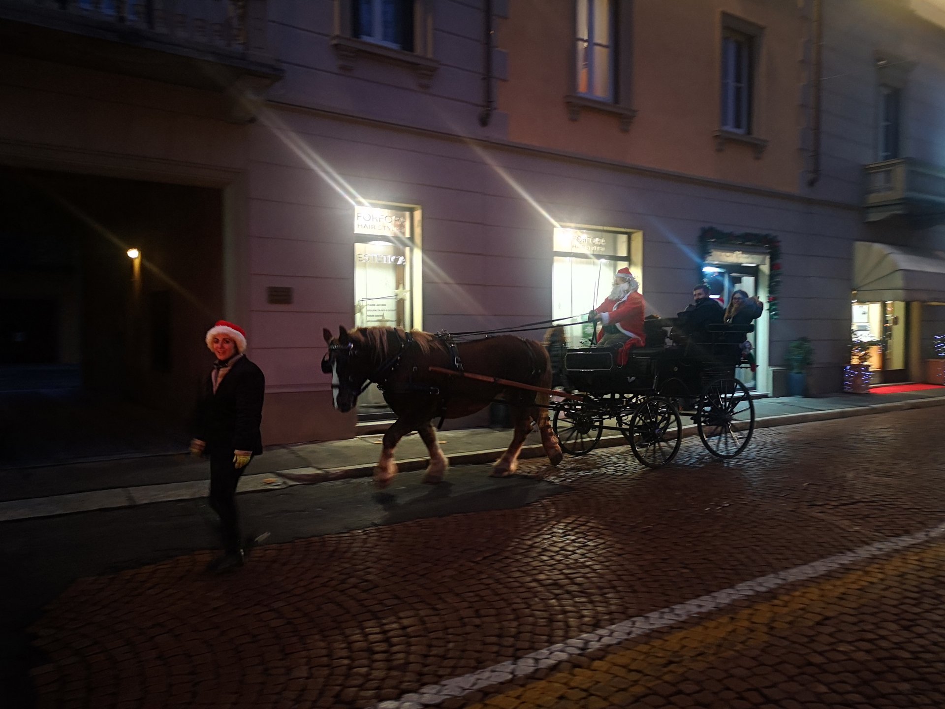La carrozza col cavallo che trasporta i cittadini per le vie cittadine insieme a Babbo Natale