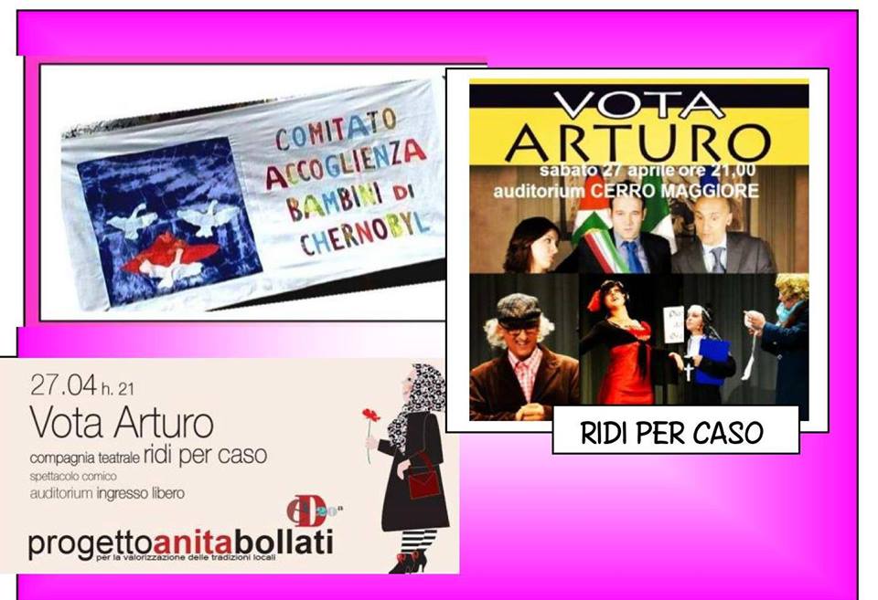 Spettacolo comico "Vota Arturo" all'auditorium Cerro Maggiore per aiutare il comitato attivo nell'accoglienza dei piccoli ucraini.