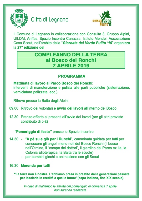 Da anni leader per la sensibilizzazione e l’informazione ai cittadini sulle tematiche ambientali, la Regione Lombardia organizza per il 7 Aprile, in concomitanza con la Giornata del Verde pulito, la ventisettesima edizione del Compleanno della Terra.