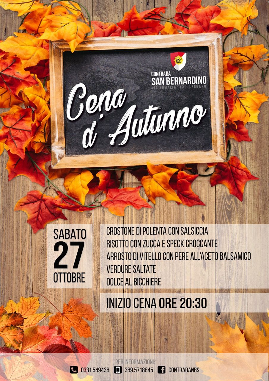 La Contrada San Bernardino ha organizzato la “cena d’autunno”. Appuntamento sabato 27 ottobre al Maniero di Contrada a Legnano.