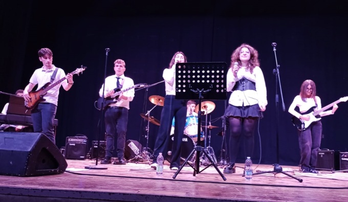 La serata al Teatro Italia ha visto un corposo momento canoro della scuola di musica dell’Istituto cattolico San Luigi. I ragazzi che frequentano i corsi si sono divisi in 4 band formate da 5 o 6 ragazzi con strumenti musicali tecnicamente all’avanguardia. La prima a salire sul palco la Band Sterebels che ha portato cinque brani tra cui l’applauditissima Albachiara di Vasco Rossi. Poi è stata la volta della Band Treppetubies con un meraviglioso e ben cantato Lovefool, a seguire la Acido Fosforico con altri brani di successo internazionali. Ultima band sul palco la Lost Picks che ha terminato con il famoso tormentone di Jovanotti “Il più grande spettacolo dopo il big bang”.