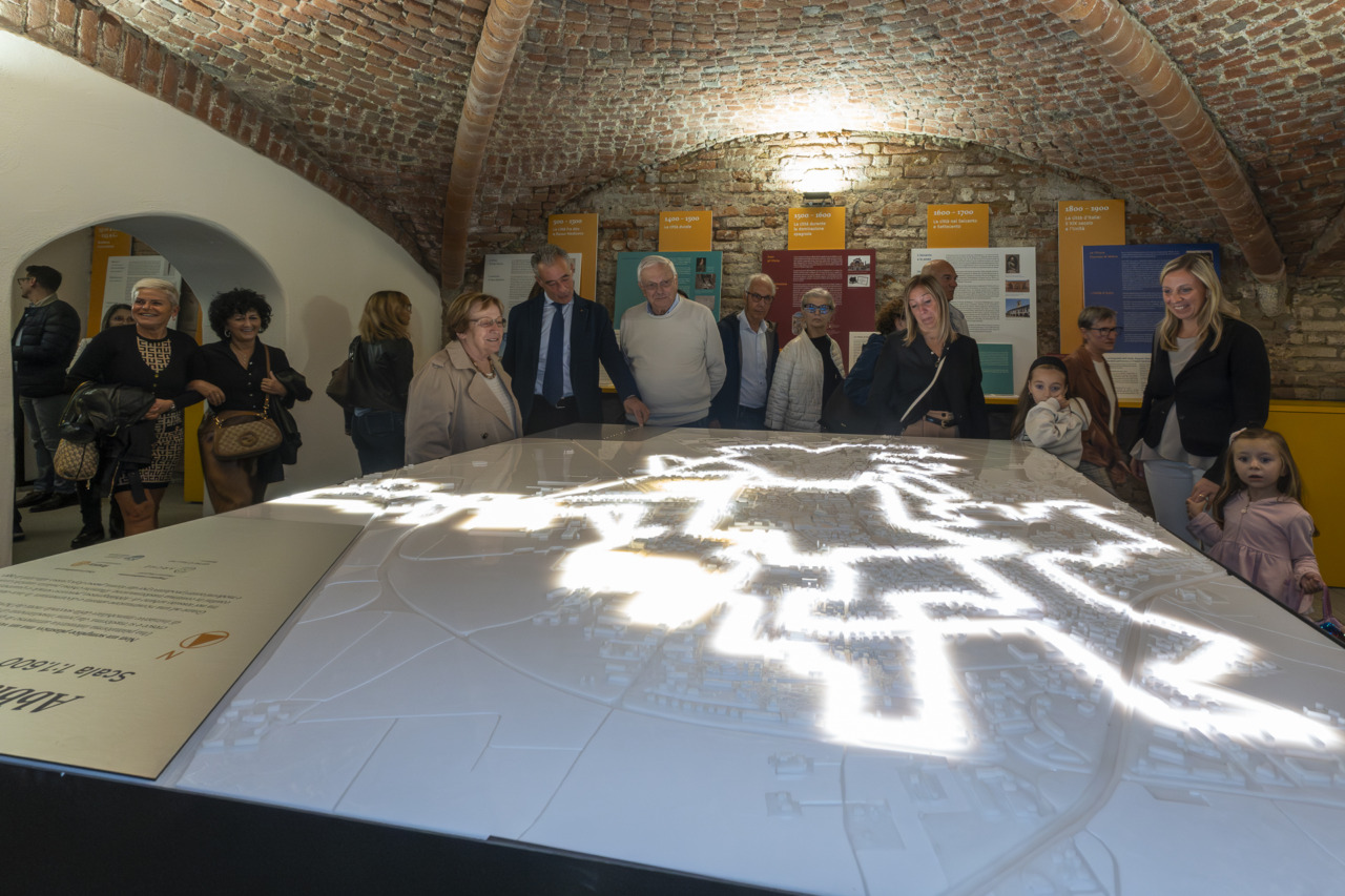 Grande protagonista dell’allestimento e vero e proprio polo d’attrazione per il pubblico è stato il monumentale plastico interattivo di Abbiategrasso: un manufatto di 2×2,5 metri, stampato in 3D e dotato di un sistema di illuminazione sequenziale, che permette di ricostruire lo sviluppo urbano della città, dai primi insediamenti medievali sino al boom edilizio degli anni Settanta, Ottanta, Novanta e Duemila.