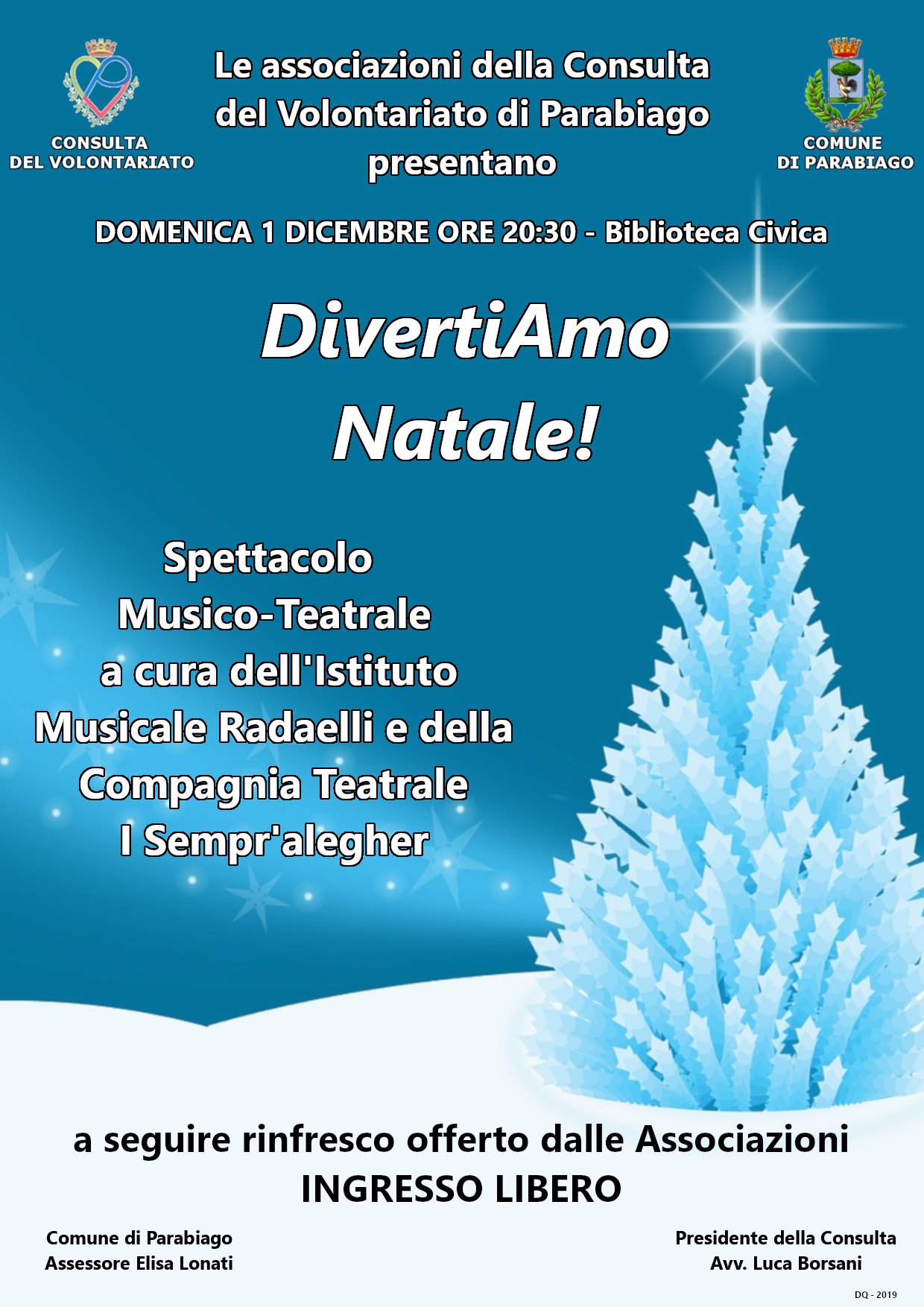 Anche quest’anno torna l’appuntamento per un Natale all’insegna della festa. Gioia e solidarietà grazie alle associazioni della Consulta del Volontariato che, domenica 1 dicembre 2019 alle 20.30 alla biblioteca civica, porteranno in scena un divertentissimo spettacolo a cui tutta la cittadinanza è invitata a partecipare.