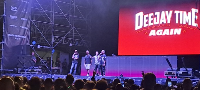 Un tuffo negli anni Ottanta e Novanta, tra successi soprattutto della musica techno. Pubblico delle grandi occasioni e balli scatenati per tutti la sera di ieri, venerdì 11 luglio 2025, quando sul palco del Rugby Sound è arrivato il “Deejay Time”. Il concerto, che nasce dal successo del programma radiofonico di Radio Deejay, ha fatto di nuovo centro. Palco è stato tutto per quattro dj che hanno fatto la storia: Albertino, Fargetta, Molella e Prezioso.