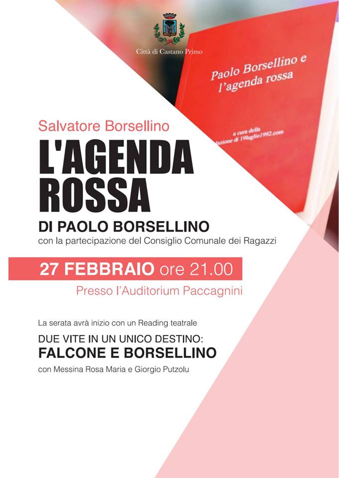 Grande attesa a Castano Primo per l’incontro con Salvatore Borsellino, fratello del magistrato Paolo Borsellino, ucciso dalla mafia insieme agli uomini della sua scorta. L’evento, che si inserisce nell’ambito delle celebrazioni per i Tre Martiri Castanesi, si terrà mercoledì 27 febbraio 2019 alle 21 all’auditorium Paccagnini di piazza XXV aprile. “L’agenda rossa” è il titolo dell’incontro, a cui parteciperanno anche i piccoli consiglieri del Consiglio comunale dei ragazzi e delle tagazze. La serata inizierà con un reading teatrale con Maria Rosa Messina e Giorgio Putzolu, dal titolo “Due vita in un unico destino: Falcone e Borsellino”.