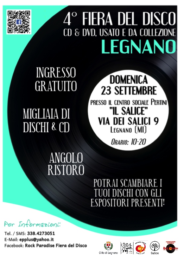 Domenica 23 settembre al Centro Pertini – Salice Legnano si terrà la quarta edizione della Fiera del Disco. La fiera sarà aperta dalle 10 alle 20 con la possibilità di scambiare i dischi con i rivenditori. Servizio ristorazione aperto tutto il giorno con il bar e l’osteria Il Salice.