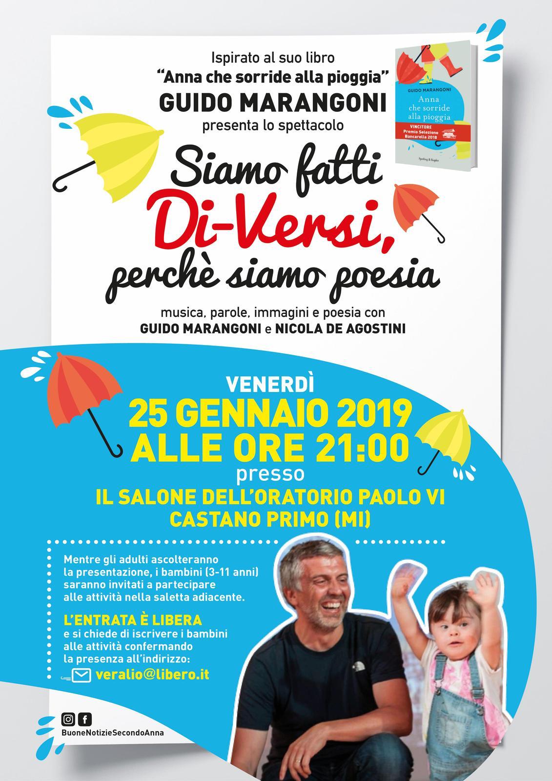 “Siamo fatti di-versi, perché siamo poesia”: questo il titolo dello spettacolo che andrà in scena a Castano Primo venerdì 25 gennaio 2019 alle 21 nel salone dell’oratorio Paolo VI.