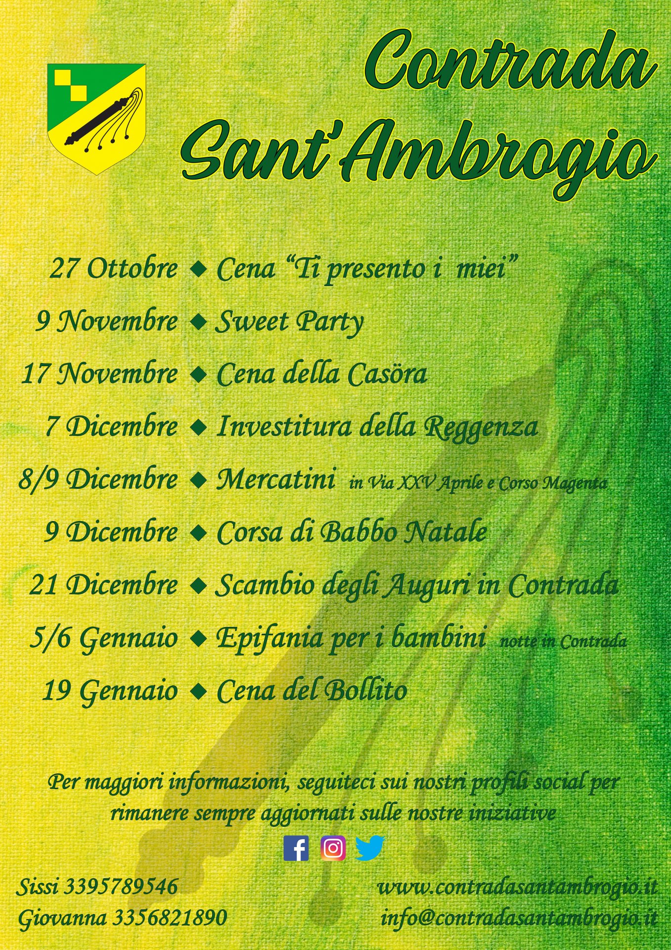 Non solo lo SWEET PARTY, sono numerosi gli eventi organizzati dalla Contrada Sant’Ambrogio. Ecco nella locandina qui sotto i prossimi appuntamenti.