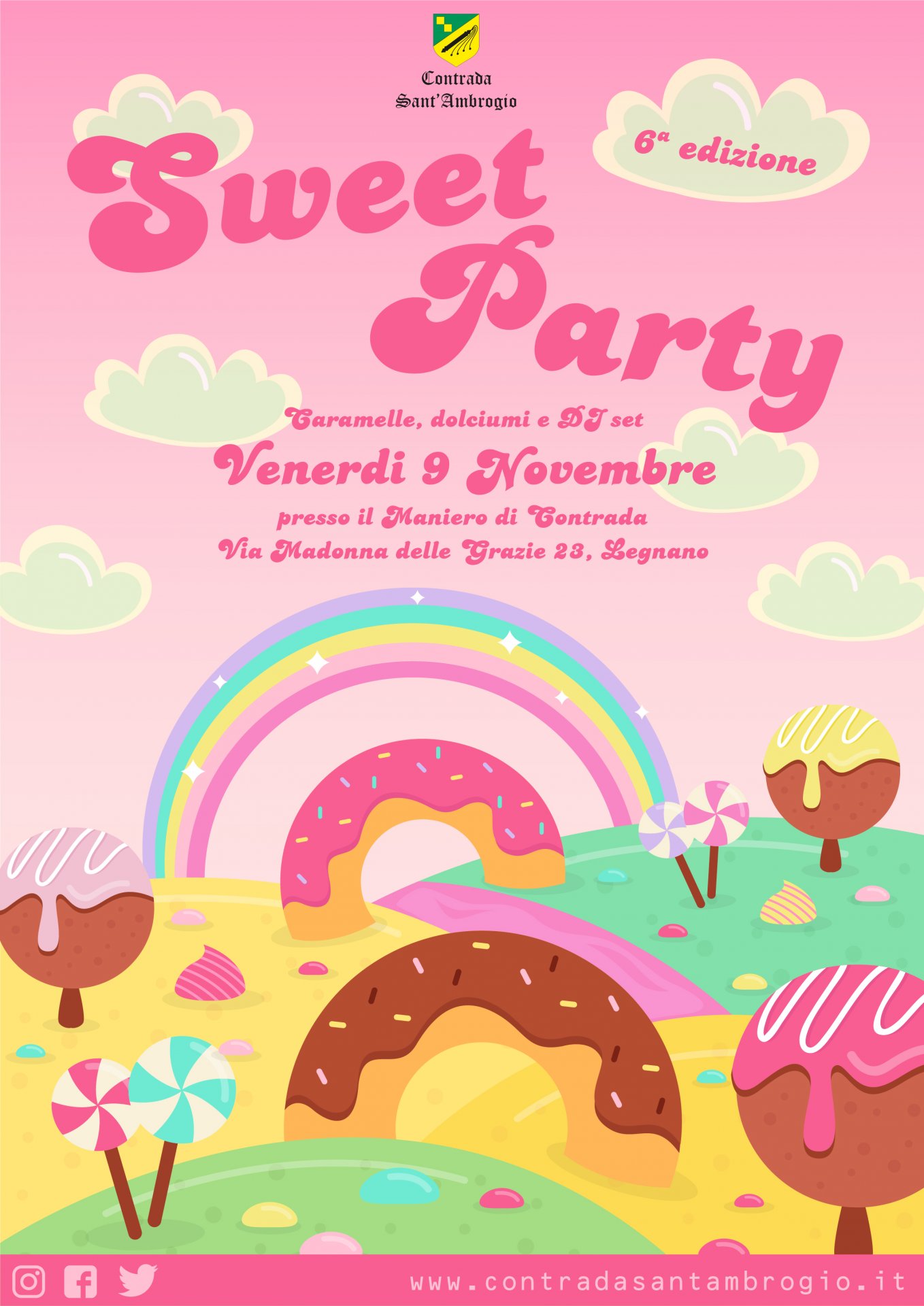 Venerdì 9 novembre al Maniero di Contrada in via Madonna delle Grazie a Legnano torna lo SWEET PARTY. La festa, organizzata dalla Contrada Sant’Ambrogio, giunge così all’edizione numero 6. Ad attendere i partecipanti dolciumi, caramelle, ma soprattutto tanto divertimento con la musica del DJ set.