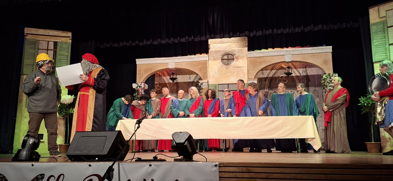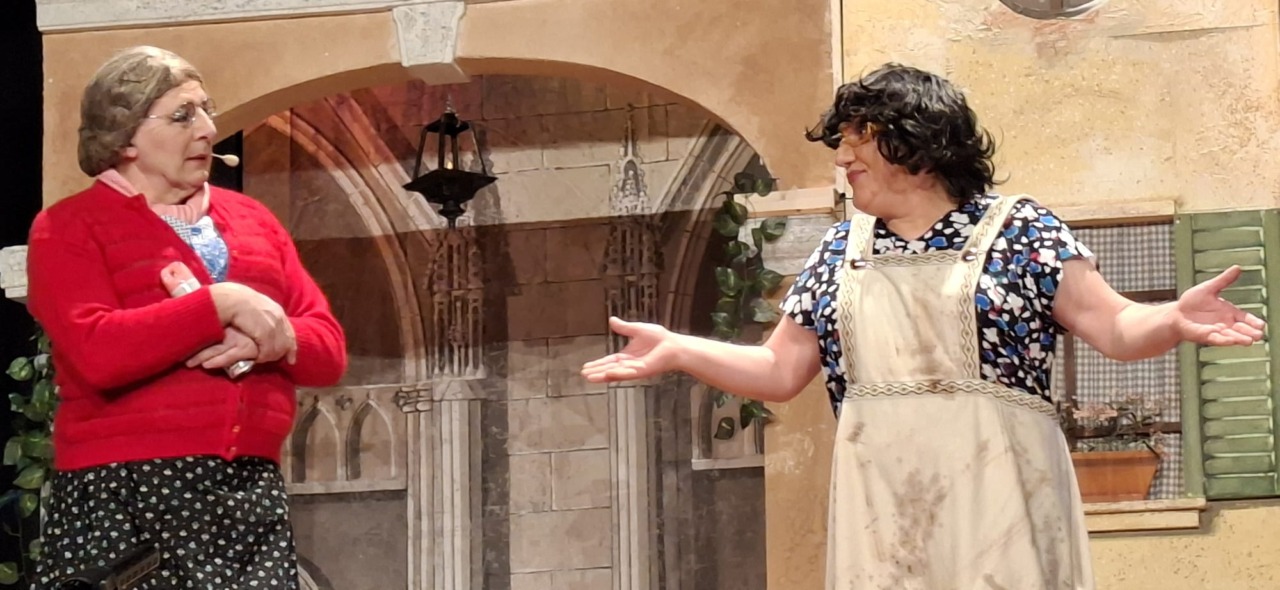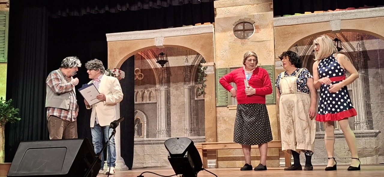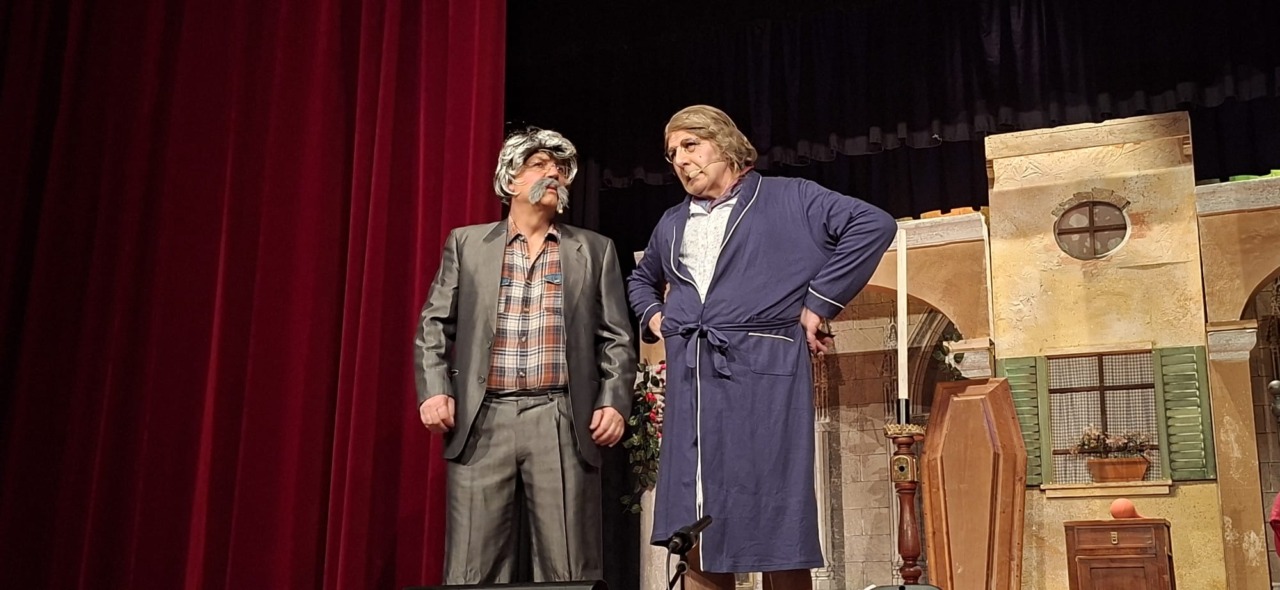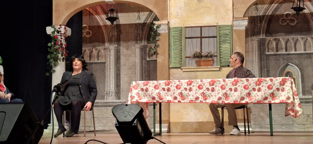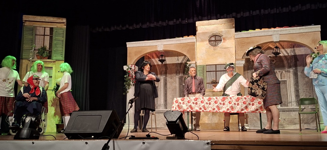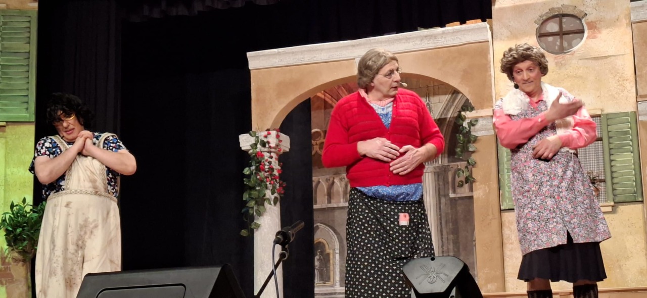 Per la compagnia, un’altra serata da incorniciare. Nata nel 1990, l’anno scorso era tornata sulle scene con questo spettacolo, modo anche per celebrare i suoi primi 35 anni. Un’attività sul palco che è sempre andata a braccetto con la solidarietà. A capitanare il gruppo è sempre Pinuccio Gallo Stampino, nei panni della Maria, che proprio dal palco ha ricordato al pubblico: “Le storie dei vecchi cortili sono le storie dei nostri ricordi, delle nostre mamme, dei nostri papà, dei nostri nonni. Le donne e gli uomini dei cortili sono tutti qui, in scena, e chi di noi ha vissuto la vita dei cortili sa bene che vita era: si viveva insieme tutti i giorni, e le stelle del cielo sono i riflettori del palcoscenico. Tutto quello che potevamo fare noi questa sera, era trasformare la nostra e la vostra vita di tutti i giorni con una farsa, con la grande magia del teatro. E chi sono gli interpreti? Voi, noi, loro che sono lassù in cielo”.
