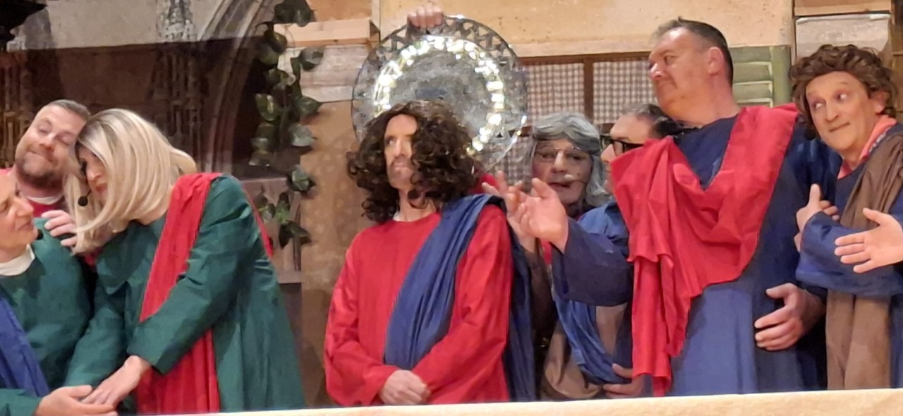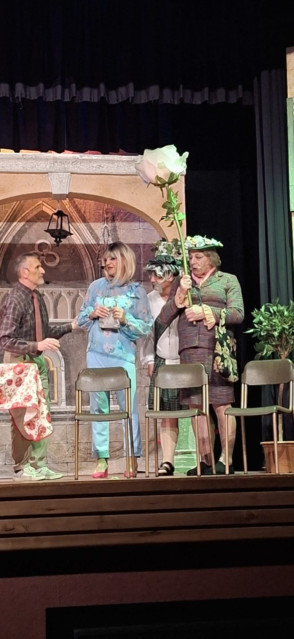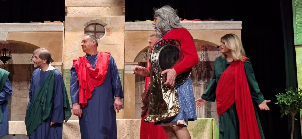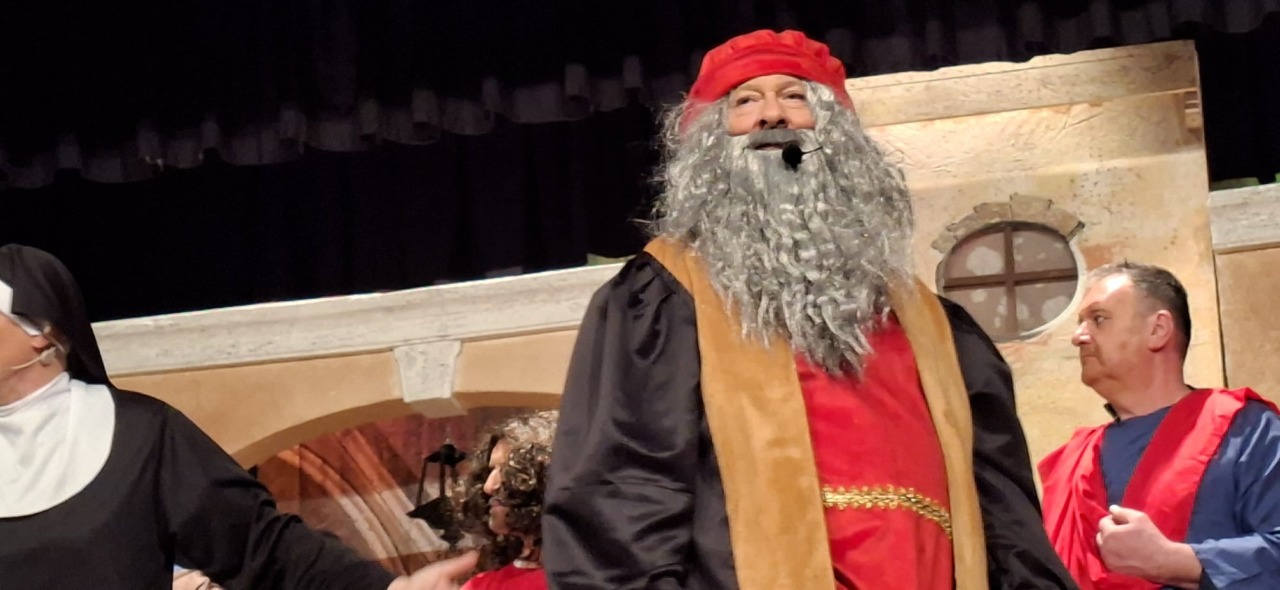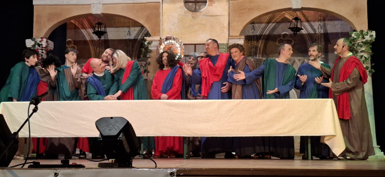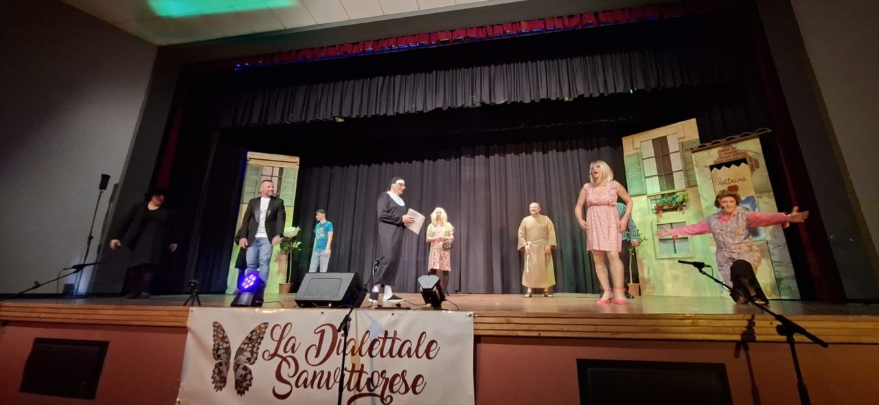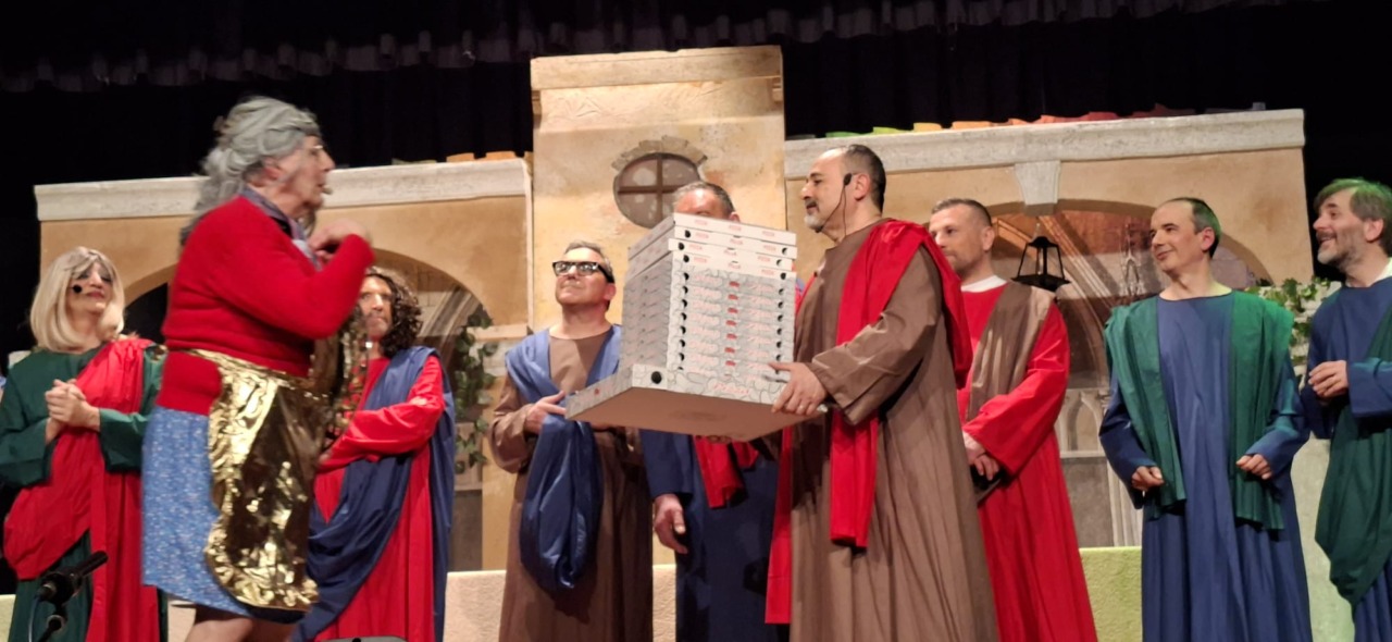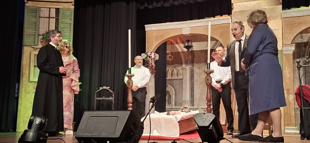 Per la compagnia, un’altra serata da incorniciare. Nata nel 1990, l’anno scorso era tornata sulle scene con questo spettacolo, modo anche per celebrare i suoi primi 35 anni. Un’attività sul palco che è sempre andata a braccetto con la solidarietà. A capitanare il gruppo è sempre Pinuccio Gallo Stampino, nei panni della Maria, che proprio dal palco ha ricordato al pubblico: “Le storie dei vecchi cortili sono le storie dei nostri ricordi, delle nostre mamme, dei nostri papà, dei nostri nonni. Le donne e gli uomini dei cortili sono tutti qui, in scena, e chi di noi ha vissuto la vita dei cortili sa bene che vita era: si viveva insieme tutti i giorni, e le stelle del cielo sono i riflettori del palcoscenico. Tutto quello che potevamo fare noi questa sera, era trasformare la nostra e la vostra vita di tutti i giorni con una farsa, con la grande magia del teatro. E chi sono gli interpreti? Voi, noi, loro che sono lassù in cielo”.