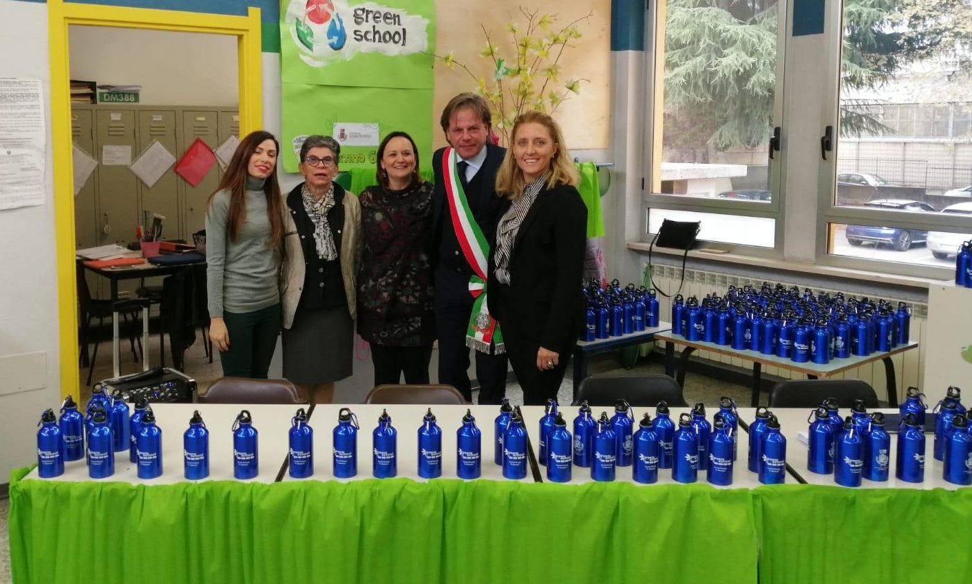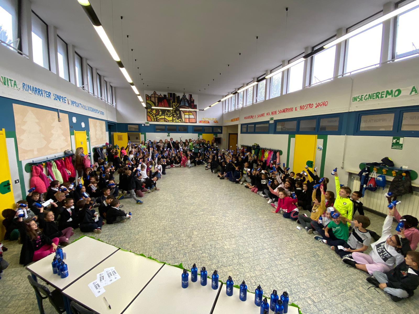 Più di 200 borracce in alluminio  consegnate agli studenti e ai docenti della scuola primaria  Manzoni di Solbiate Arno, che da anni aderisce con successo al progetto Green School.