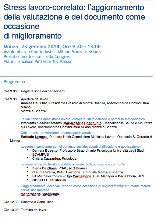 Stress lavoro-correlato, se ne parla con Assolombarda Confindustria Milano Monza e Brianza, martedì 23 gennaio.