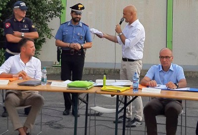 In quell’occasione, il sindaco Roberto Crippa ha voluto consegnare pubblicamente un elogio ufficiale ai Carabinieri della tenenza di Cesano Maderno (a cui dallo scorso mese di aprile è passata la competenza su Ceriano Laghetto). L’elogio ufficiale è stato consegnato al comandante della tenenza, luogotenente Sebastiano Ciancimino, per avere risolto brillantemente, nel giro di appena dieci ore, il caso di una donna rapinata in stazione con una siringa. Il responsabile della rapina è stato fermato e assicurato alla giustizia, mentre la borsetta oggetto di rapina e contenente gli effetti personali della donna è stata recuperata nel giardino di una villetta su indicazione dello stesso responsabile, un 28enne tossicodipendente, identificato e fermato dai Carabinieri con la collaborazione della Polizia Locale di Ceriano, per risolvere rapidamente un caso che ha suscitato un certo clamore nella popolazione. L’elogio consegnato ai Carabinieri sottolinea “l’attività di promozione e diffusione della legalità, traino per promuovere atteggiamenti positivi, utili per tentare di risolvere problemi ancor più gravi”.