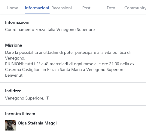 Ecco cosa può succedere quando chi gestisce una pagina Facebook si candida in un’altra lista. Unico membro del “team” di gestione della pagina Forza Italia Venegono Superiore è infatti il vicesindaco Olga Maggi, tra i nomi della squadra di Intesa Civica. Alla quale, a quanto pare, nessuno del partito ha pensato di togliere le autorizzazioni di gestione della finestra social di Forza Italia, nonostante la delicata campagna elettorale.