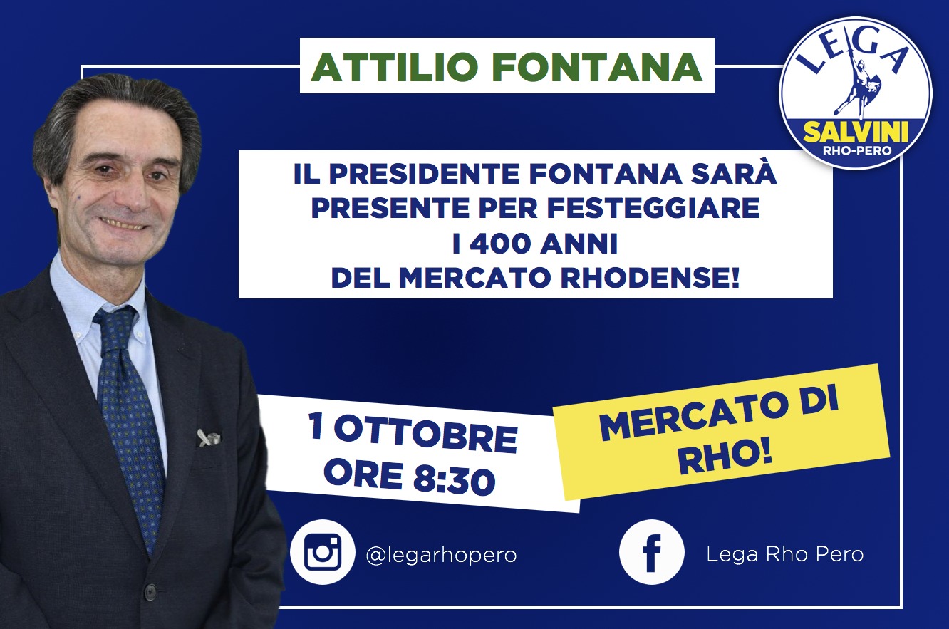 Lunedì 1 ottobre, alle ore 8.30, il Presidente di Regione Lombardia Attilio Fontana sarà a Rho per partecipare ai festeggiamenti per i 400 anni del Mercato del Lunedì. Nel merito è intervenuto il consigliere regionale della Lega Simone Giudici.