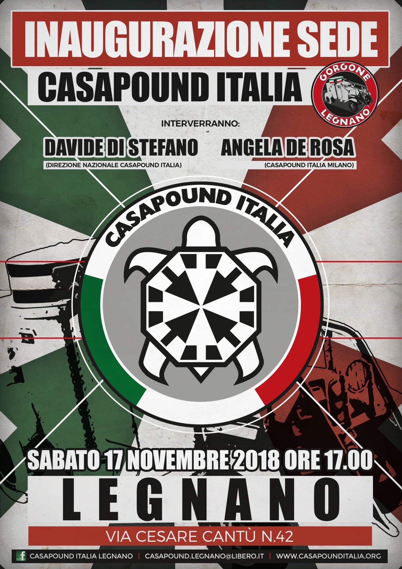 Avrà luogo sabato 17 novembre, a partire dalle 17, l’inaugurazione della nuova sede di CasaPound a Legnano.