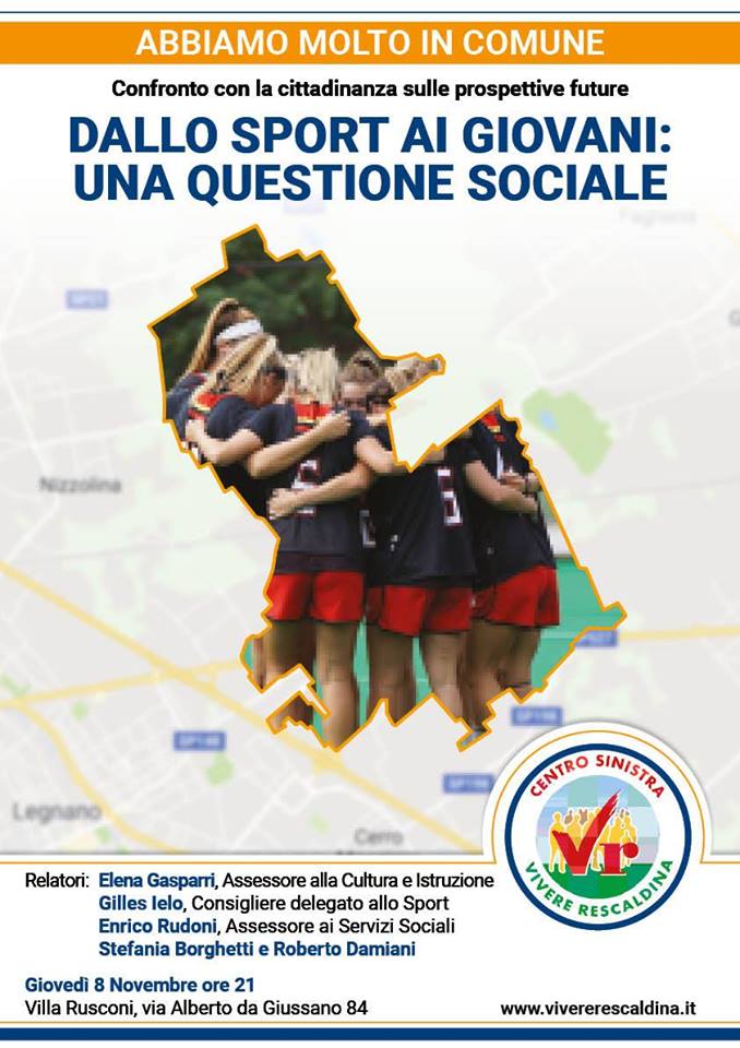 Incontro pubblico e confronto con la cittadinanza. Il titolo è “Dallo sport ai giovani: una questione sociale”. Appuntamento giovedì 8 novembre, alle 21, a Villa Rusconi, in via Da Giussano. Promotore dell’evento la lista civica di maggioranza “Vivere Rescaldina” che farà un bilancio di quanto svolto finora con uno sguardo al futuro.